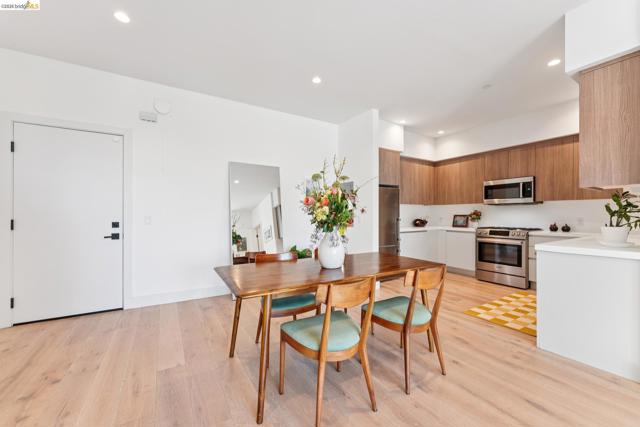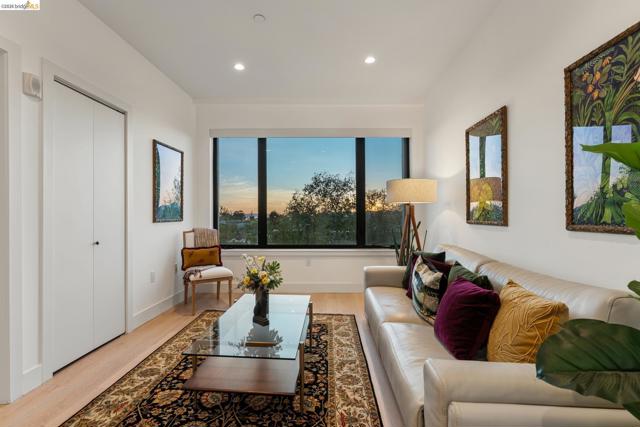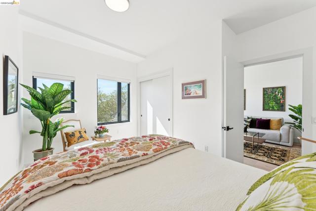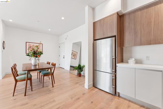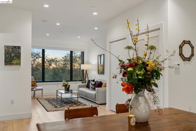 Contemporary, light-filled top-floor condominium built in 2020, featuring filtered bay views from multiple rooms. This 1 bed, 1 bath residence offers a thoughtfully designed open floor plan with expansive windows that flood the space with natural light, creating a bright and airy living environment. The modern layout is ideal for everyday living and entertaining. Radiant heat throughout. Dedicated parking adds everyday convenience. Residents enjoy access to a shared rooftop garden with sweeping views of the bay, 2 bridges, surrounding hills, and The Campanile—a perfect setting for relaxing, gathering with friends, or taking in the sunset. Located in vibrant Southwest Berkeley, 2747 San Pablo Ave places you in the heart of a dynamic neighborhood. Just moments away, Berkeley Bowl West is a local favorite. The surrounding San Pablo Avenue corridor is lined with cafes, restaurants, and everyday conveniences, reflecting the area’s diverse and creative spirit. With easy access to I-80/580, nearby transit options, and proximity to West Berkeley’s thriving arts and maker scene, this location offers a rare blend of connectivity, culture, and comfort—making it an ideal place to call home. Views: Downtown