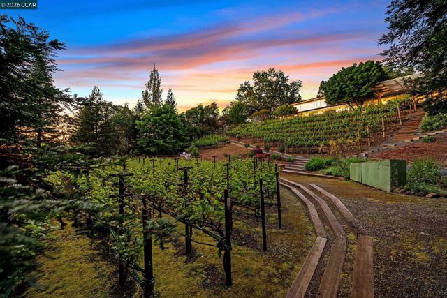 Contemporary luxury meets vineyard charm in this stunning privately gated 4-bed, 2.5-bath home that sits on .70 acre of pristine land, offering the ultimate retreat at the end of a quiet cul-de-sac. Experience panoramic views and unparalleled privacy in one of Alamo’s most serene pockets. Updated fabulous floorplan using the finest fit and finishes. Amazing chef’s kitchen features granite counters with center island, Thermador appliances, custom cabinetry and more! Spacious family room off kitchen with gas-burning fireplace. Beautiful hardwood flooring, trex type decking, presidential composition roof. Amazing backyard perfect for summer entertainment with gas stone fire pit, paver patio and views forever. Private Vineyard with established vines and an agricultural well. Access to highly-rated San Ramon Valley School District top schools. Close to 680 freeway, shopping and walking trails. Don't miss this unique property and an opportunity to own your "Dream Home".