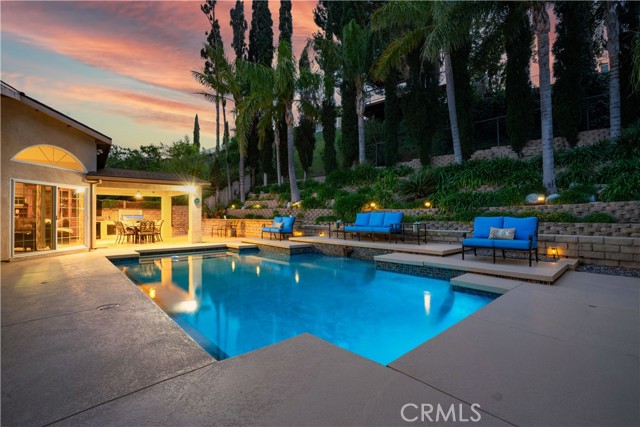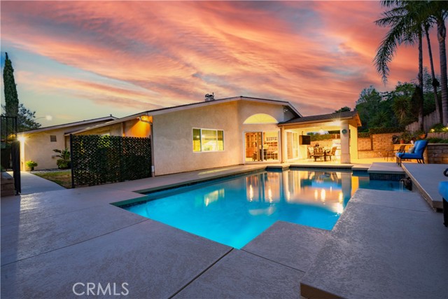 Looking for a Porter Ranch home for sale with a pool, single-story layout, and top-rated schools? If you’re moving to Porter Ranch or searching for the lifestyle that comes with living in Porter Ranch, this home checks all the boxes. Beautifully maintained 3-bedroom, 2-bath home with 1,814 sq ft of living space and a rare 3-car garage, designed for comfort and indoor-outdoor living. From the moment you arrive, you’re greeted by strong curb appeal, a wide paver driveway, and a charming private front courtyard. Inside, the home features a spacious layout with both formal and casual living areas. The formal dining room is ideal for gatherings, while the living room includes a cozy fireplace and welcoming atmosphere. The kitchen serves as the heart of the home, featuring granite countertops, rich cabinetry, stainless steel appliances, and a breakfast bar that opens to the main living space, creating a natural flow for everyday living and entertaining. A built-in bar area with wine refrigerator adds an extra touch for hosting. The family room stands out with large built-in lighted cabinetry and two expansive 8-foot sliding glass doors that bring in natural light and open directly to the backyard. The home includes remodeled bathrooms, and the primary suite features an attached en-suite bathroom, offering privacy and comfort. Step outside to a backyard designed for Southern California living, complete with a covered patio, built-in BBQ kitchen with sink and refrigerator, and a pool surrounded by multiple seating areas and lush, terraced landscaping for added privacy. Located near award-winning schools including Castlebay Lane Elementary, Robert Frost Middle School, and Granada Hills Charter High School, plus close to hiking trails, parks, The Vineyards at Porter Ranch, and easy freeway access. A rare opportunity to own a home that combines location, layout, and lifestyle in one of Porter Ranch’s most desirable areas.