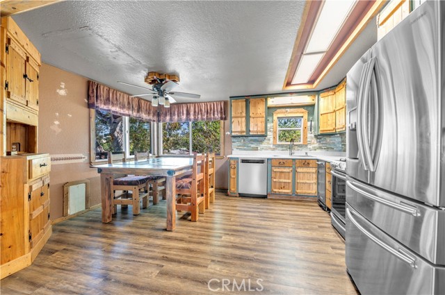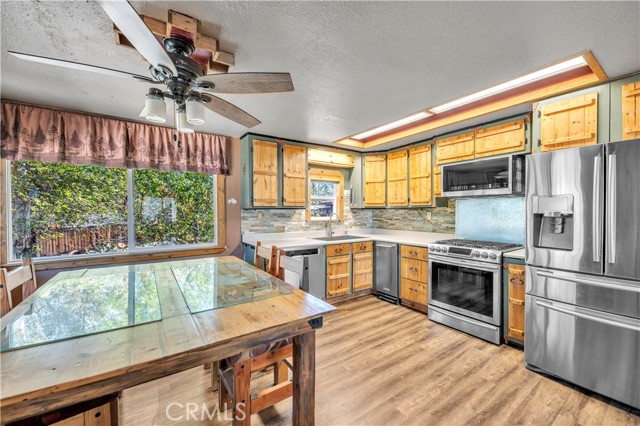 WELCOME HOME to your own designer rustic retreat! A one of a kind 3 bedroom, 2 bathroom home set on a spacious lot with an additional 5,227 sf parcel offering endless possibilities. Warm, inviting interiors showcase custom woodwork, handcrafted built-ins, and a cozy wood burning stove that anchors the living space. The kitchen blends charm and function with stainless steel appliances, custom cabinetry, and an intimate dining area filled with natural light. Bedrooms continue the custom aesthetic, while bathrooms feature unique stone and tile finishes. Step outside to a private backyard sanctuary with multiple covered patios, curated landscaping, and thoughtfully designed gathering spaces perfect for relaxing or entertaining. Major upgrades include new roof (2024), new HVAC (2024), electric water heater, upgraded 400 amp electrical panel, and new stucco/exterior coating (2018). Additional highlights include an elevated view deck, oversized driveway, and room for RV parking, ADU potential, or expansion. A rare blend of character, craftsmanship, and opportunity. Don't wait, this is NOT your average home!