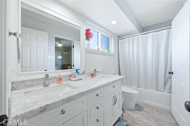 Welcome to 18036 Arroyo Lane, Chino Hills, a beautifully upgraded home offering 1,531 sq. ft. of living space with 3 bedrooms and 2.5 bathrooms in a highly desirable neighborhood. Step into a bright and inviting living room featuring high vaulted ceilings that create an open and airy atmosphere while allowing abundant natural and ambient light to fill the space. The home has been upgraded with modern vinyl plank flooring throughout, providing both style and durability. The remodeled kitchen features quartz countertops and upgraded cabinetry with extended upper cabinets, offering both elegance and functionality for everyday cooking and entertaining. All bathrooms have also been upgraded with quartz countertop vanities, giving the home a cohesive and modern finish. A permitted, fully insulated sunroom addition provides valuable extra living space perfect for a family room, office, or entertainment area. Downstairs includes a modified bedroom/tech space and an added shower, creating flexible living options for guests, extended family, or work-from-home needs. Additional highlights include 24 fully owned solar panels to be paid off by the seller at close of escrow, a 220-volt outlet in the garage ready for an electric vehicle charger, artificial turf landscaping for low maintenance, and a custom designed front gate that enhances the home’s curb appeal. Conveniently located near top-rated schools, shopping centers, parks, and major transportation routes, this home also offers the advantage of NO HOA and a low property tax base. A wonderful opportunity to own a move-in ready, energy-efficient home in the heart of Chino Hills.