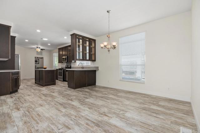 Welcome to Lakeshore Gardens, a highly coveted gated 55+ coastal community located west of I-5 in beautiful Carlsbad. This well-maintained neighborhood is fully enclosed with a 6-foot perimeter wall and secured entry gates, offering both privacy and peace of mind. Set on approximately 54 acres of lush landscaping, the community features mature trees, greenbelts, and numerous freshwater lakes surrounding more than 380 residences. Meandering walking paths and refreshing ocean breezes create a tranquil resort-style atmosphere throughout the community. Immaculate move in opportunity via a lovely, raised deck Timber Tech Azek decking (2 yrs new) complete with cover and roller shades. Light, bright t/o, tray ceiling living room flowing effortlessly to a large dining area and elegant, spacious kitchen with casual dining nook, all under a vaulted ceiling. Ceiling fan lights in every room. The split floor plan creates privacy between the primary en-suite in the rear and two secondary bedrooms plus a full bathroom in the front. The Front Bedroom offers an excellent opportunity for an in-home office. The primary bedroom includes an enormous walk-in closet with built-ins and a large bathroom with a huge, refreshing, glass enclosed, spa-style walk-in shower. Tasteful upgrades and features include soft corners, contemporary barn doors, tasteful chandelier, fresh new carpets and earthy, beachy, bleached flooring. Two patio areas--one with warm, neutral pavers which is a spacious outdoor patio area to gather with neighbors and friends. The other to the rear for your gardenng. A well built fixed storage shed, Sola Tubes, and more. New motor installed in heater recently. Residents enjoy an abundance of amenities including a heated pool and spa, sauna, on-site fitness center, billiard room, ping pong, shuffleboard, and a welcoming clubhouse featuring a stage, kitchen, fireside lounge, card room, and an extensive library. The spacious outdoor patio area offers a fountain, fire pit, outdoor fireplace, and barbecue areas, perfect for relaxing or gathering with neighbors. An active social calendar offers something for everyone, with activities such as card games, mixer nights, bingo, craft groups, golf groups, monthly breakfasts, ladies and men’s luncheons, and holiday meals, allowing residents to enjoy a vibrant and engaging lifestyle or simply relax at their own pace. Conveniently located directly across from Poinsettia Village Shopping Center. Residents have easy access to grocery shopping at Ralph’s, a gas station, a UPS store, pet store, Supercuts, restaurants, cafés, banks, shops, and everyday conveniences. The community is also just minutes from the beaches and coastal attractions of Carlsbad Village, along with golf courses, entertainment, medical facilities, and scenic shoreline walking paths. Up to two pets are permitted, though they must be exercised outside of the park. Experience the ease and charm of coastal living in this vibrant and welcoming community.
