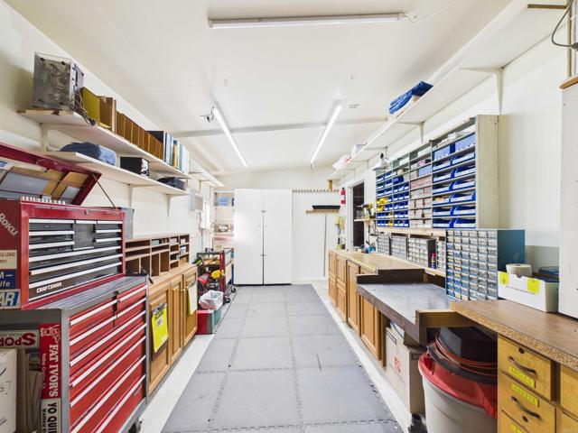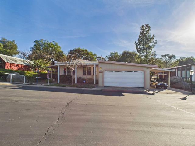 Welcome to Skyline Ranch Country Club—one of Valley Center’s premier 55+ communities offering resort-style living with free golf for residents. Major system upgrades are already complete, including a roof replacement in 2020 and professional re-leveling in 2019—providing immediate peace of mind and long-term value. This home stands out in a crowded market as one of the only properties in the community offering a full 2-car garage, a golf cart carport, and an attached workshop—a rare and highly sought-after combination that sets it apart from the rest. Offering approximately 1,632 sq ft, this well-maintained 3-bedroom home plus office/hobby room showcases pride of ownership throughout. The spacious layout features a fireplace with striking stone façade wood-burning fireplace, along with custom maple cabinetry, dovetail drawers, and thoughtfully designed kitchen storage. Natural light fills the home through dual-pane vinyl windows, while woodgrain laminate flooring adds warmth and durability. The primary suite includes a walk-in closet, and the secondary bedrooms feature charming bay windows. A generator connection at the main electrical panel adds an extra layer of convenience and preparedness. Step outside and experience what truly makes this home special—a private setting within the community, with covered front and rear porches, a personal spa, and a peaceful lookout point capturing golf course and sunset views. This is a space designed for relaxation, privacy, and enjoying the best of indoor-outdoor living. Additional features include two storage sheds, automated irrigation, and an RV outlet—offering flexibility for hobbies, storage, and everyday convenience. **Space lease is approximately $1,600 per month and includes gated entry and access to Skyline Ranch’s resort-style amenities—pools, spa, fitness center, clubhouse, dog park, RV storage, and scenic walking paths.**
