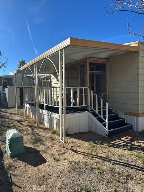Charming double-wide home in the sought after 55+ Aztec Estates community! Enjoy a prime east-side location with a private backyard and stunning mountain views. This inviting home offers 2 bedrooms, including a spacious room with walk-in closet, plus a covered carport with ramp access for added convenience. There is a great porch off the master bedroom with good views of the mountains. There is even a "Catio" Stay comfortable year-round with efficient heating and cooling. There is a cozy gas powered woodstove in the living room for those cold nights. Take advantage of resort-style amenities including a pool, clubhouse, fitness center and a library. Close to downtown Yucca Valley and transportation. A must-see opportunity!