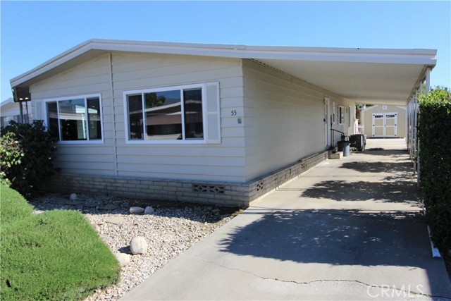 Welcome to one of the most exceptional homes in Orange Grove Mobile Home Estates—where space, comfort, and value come together in a way that’s rarely available in this community. Located at 626 Dearborn N #55 in Redlands, this expansive residence stands out as one of the largest homes in the park, featuring a unique layout that is double wide in the front and opens up to a spacious triple-wide design in the rear. The result is an open, flowing floor plan with an abundance of living space that truly sets this home apart. Positioned on the largest lot in the entire complex, this property offers both privacy and room to enjoy outdoor living, all while benefiting from the lowest space rent in the park—an incredible combination that’s hard to find. Inside, the home has been thoughtfully updated and meticulously maintained. You’ll appreciate the convenience of an indoor laundry area, brand new dual-pane windows for energy efficiency, upgraded PEX plumbing, and a newer A/C system to keep you comfortable year-round. Natural light pours in through new skylights in the walk-in closets, adding a bright and airy feel throughout the home. Step outside to a clean, manicured yard complete with a newly built 10x10 permanent shed set on a concrete slab—perfect for storage, hobbies, or workspace needs. Orange Grove Mobile Home Estates is a well-kept and desirable community offering a variety of amenities including a sparkling pool and spa, fitness center, and community laundry facilities—all designed to enhance your lifestyle. This is a rare opportunity to own a spacious, upgraded home on a premium lot with unmatched value in one of Redlands’ most welcoming communities. Clean, move-in ready, and truly a must-see.