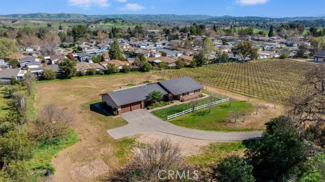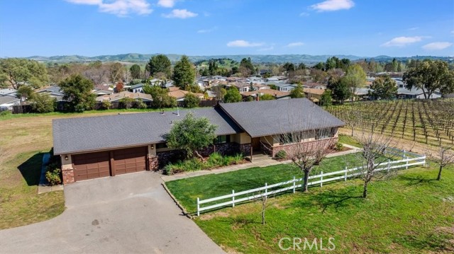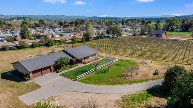 Experience the charm of West Templeton wine country at 1225 Santa Rita Road. Set on approximately 3.5 usable acres, this inviting 3BD/2.5BA home offers 1,718± sq. ft. of comfortable living space surrounded by a scenic vineyard setting. Approximately 1.7 acres are planted to Malbec grapes, creating an authentic wine country feel, with wine from the vineyard earning 93 points from Wine Enthusiast. Inside, the home features an open kitchen concept with a center island, a welcoming living room with a freestanding wood-burning stove, and a covered back porch ideal for relaxing and taking in the peaceful surroundings. The property also offers room for horses, gardens, or 4-H/FFA projects, along with several producing walnut trees, a long private driveway, and a large 2-car garage with workshop area. Located within the highly regarded Templeton School District and offering both private irrigation well and Templeton CSD water service, this appealing property combines the comforts of country living with everyday convenience, just minutes from Templeton, Paso Robles, Trader Joe’s, and other nearby amenities.