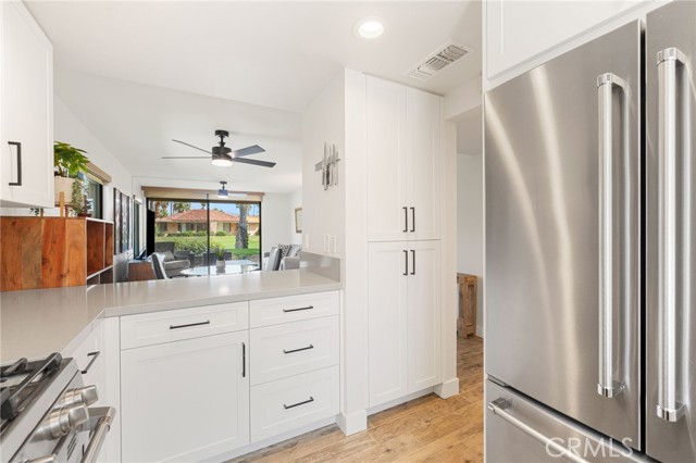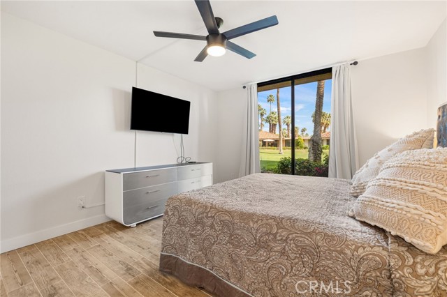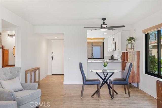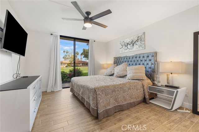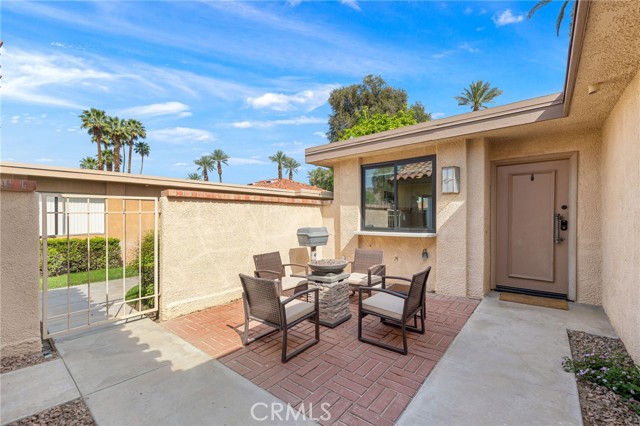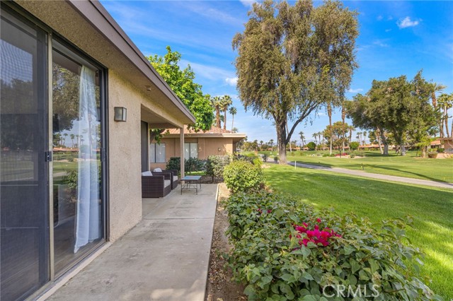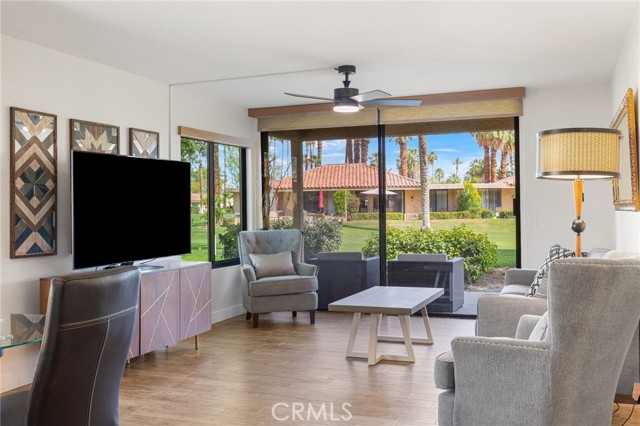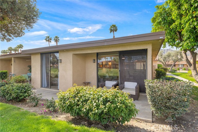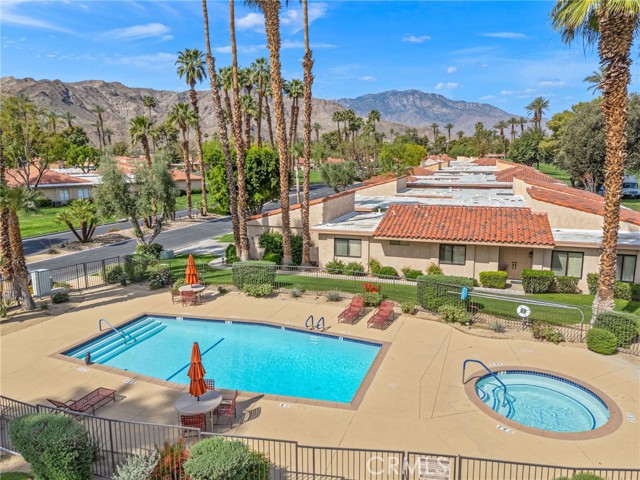 Recently updated 1 bedroom 1.50 bath South facing coveted left corner condo to maximize privacy, fairway and mountain views located on the fairway of the private Sunrise Country Club golf course. The home boasts a front and back patio, single story with cermanic tile flooring, recently renovated kitchen and bathrooms. Home priced to sell offering all the vacation and/or permanent living ammenities including pools, golf course, golf driving range, tennis, pickleball, boche ball and access to the club house with multiple restuarants and exercise facility plus a great country club social environment. No golf membership required and still have access to play golf. 30 day rentals permitted with access to golf course. VIrtual tour: https://listings.teigenmedia.com/sites/78-sunrise-dr-rancho-mirage-ca-92270-23005605/branded