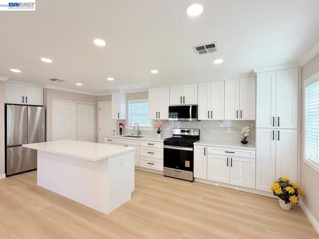 Welcome to this beautifully renovated, move-in-ready mobile home in the highly sought-after Southlake Mobile Estates, a family-friendly community within the acclaimed Irvington School District.This stylish home features fresh interior and exterior paint and a bright, open floor plan with spacious living and dining areas. The modern kitchen boasts expansive cabinetry, a large quartz island, and brand-new stainless steel appliances, including a sleek refrigerator. Both bathrooms have been fully upgraded with contemporary finishes. Additional highlights include new dual-pane windows, luxury vinyl plank flooring, and recessed lighting throughout. Offering 3 bedrooms, the generously sized primary suite is filled with natural light, creating a warm and inviting retreat. A covered patio provides the perfect space for relaxing or entertaining. Enjoy resort-style amenities including a clubhouse, two swimming pools, hot tub, sauna, and a children’s playground. Ideally located between Highways 680 and 880, with quick access to Tesla and many other major employers. Easy access to Pacific Commons shopping plaza, Costco, shopping, dining, and recreation. Low space rent of $1,359/month includes water, sewer, garbage, and community amenities. Don’t miss this exceptional opportunity! Fireplaces: NO
