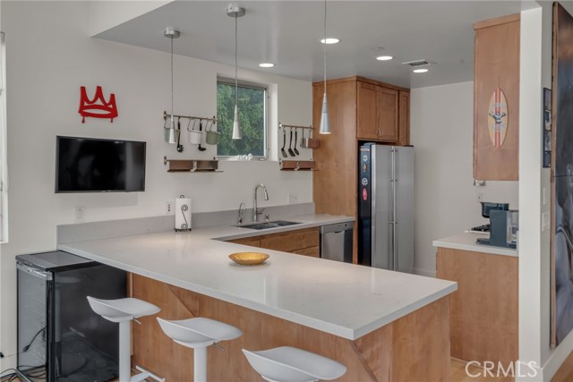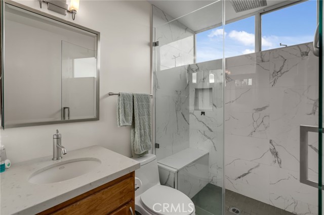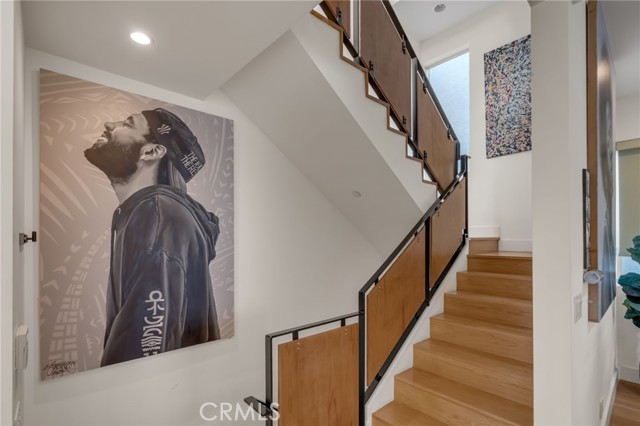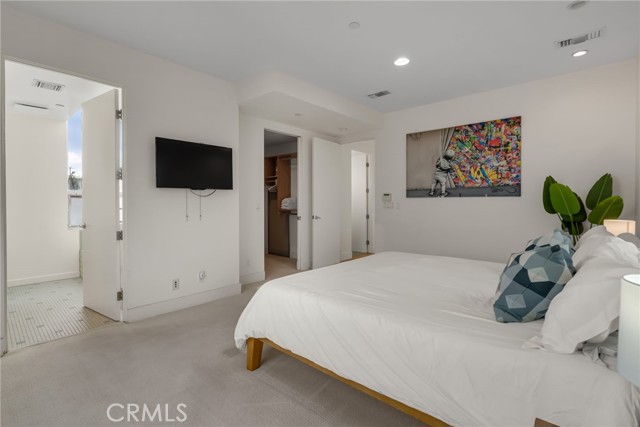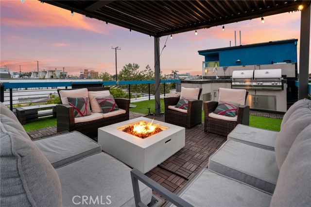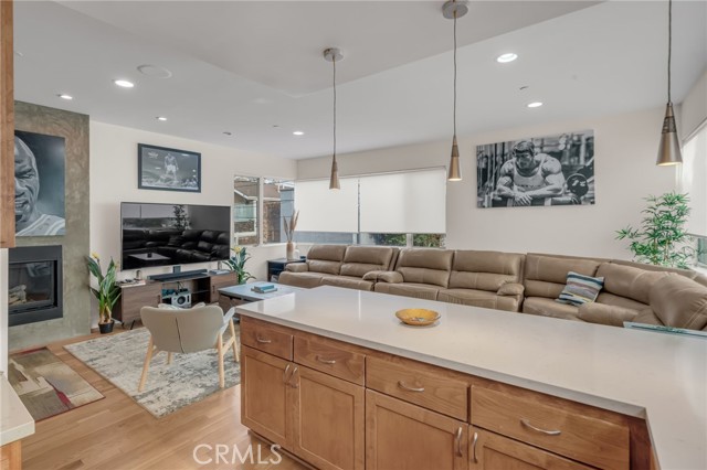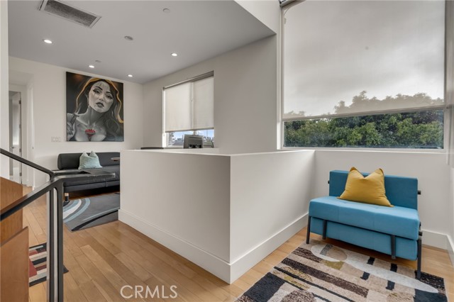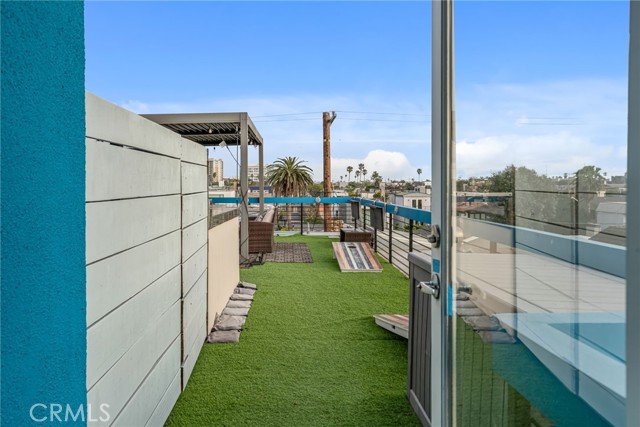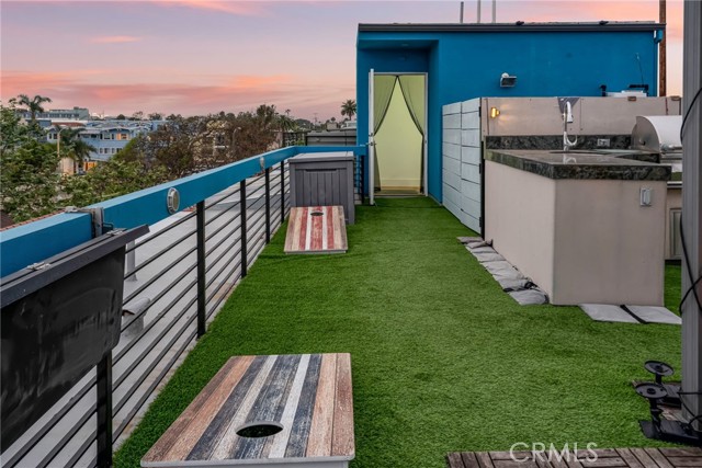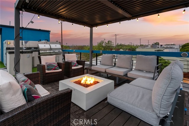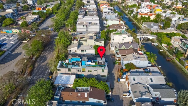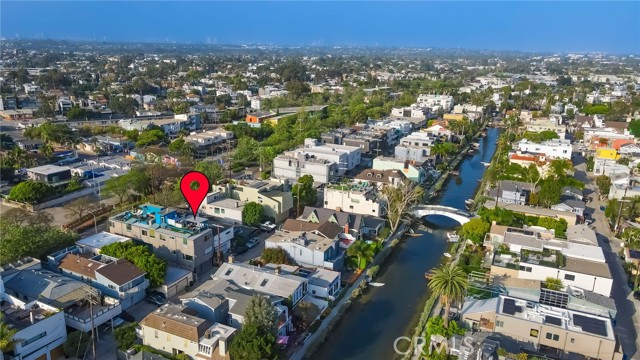 Architectural single-family home with a rooftop deck overlooking the Venice Canals. This south-facing residence with no common walls is set back from the street and filled with natural light, offering a sense of privacy in the heart of Venice. The main level features an open floor plan with two living areas, a gas fireplace, dining area, and a well-appointed kitchen with breakfast bar. The Venice Farmers Market is within walking distance. Upstairs includes two bedrooms, two bathrooms, a loft space ideal for an office or flexible use, and a dedicated laundry room. The primary suite features a walk-in closet and a bathroom with dual sinks, soaking tub, and separate shower. Additional features include high ceilings, a rooftop deck with canal and mountain views, built-in outdoor kitchen and BBQ, direct-access two-car garage, EV charging, and secured entry.