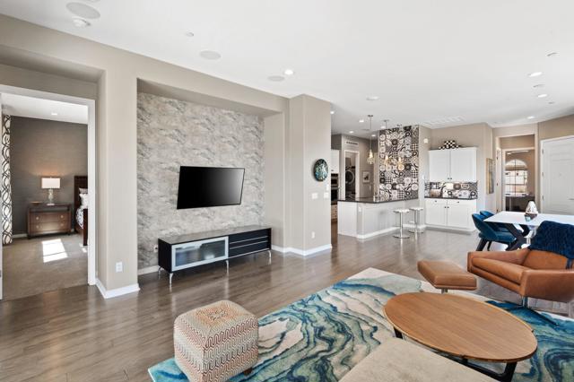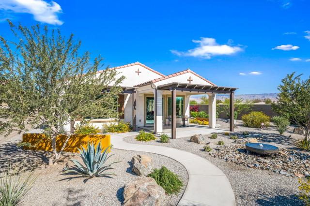 This immaculately maintained Getaway model has operated as a successful seasonal rental and is offered completely turnkey including all furnishings and decor, electronics, kitchenware and bed/bath linens, making it ideal as a move-in ready primary residence, seasonal retreat, or income-producing investment. Positioned on a deep oversized lot with no neighboring homes on one side or behind, the property offers a rare sense of privacy and openness. The south-facing backyard is a true standout that features custom desert landscaping, a contemporary water feature, a colorful metal and glass sculpture, and a curved walkway that leads to a private heated plunge pool. Both the patio and pool seating area are covered with durable Aluma-wood structures. Inside, the 2-bed, 2-bath residence is tastefully appointed with high quality furnishings and thoughtful design details. Generous windows provide abundant natural light throughout. Notable enhancements include red oak wood flooring, upgraded cabinetry and hardware, upgraded appliance package, quartz countertops, numerous custom accents, a multi-zone sound system, and more! Additionally, the home was constructed with an enhanced energy package, featuring upgraded HVAC and water heater, and an insulated garage. Owned solar and a dedicated 220V electric vehicle charging circuit complete this exceptional offering. Del Webb Rancho Mirage features first-class amenities including community pools and spa, tennis and pickleball, stunning clubhouse with social activities, and HOA services that include cable and internet, 24/7 security, and common area maintenance.