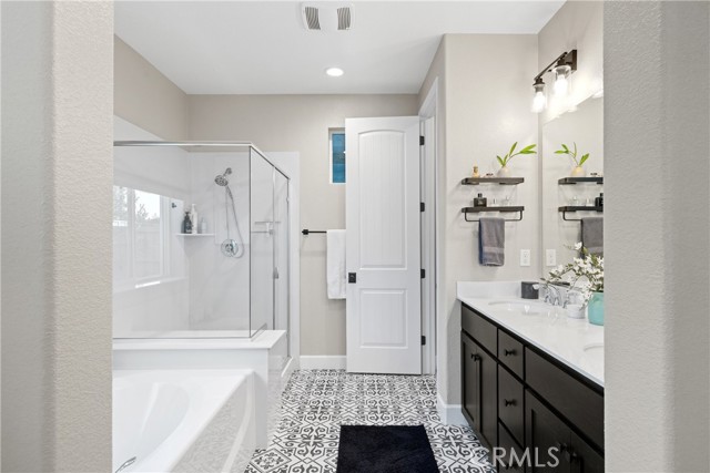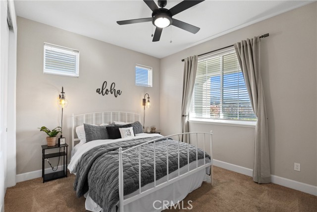 Beautifully upgraded 4-bedroom, 3-bath home built in 2021, close to Shasta Elementary, DeGarmo Park and the newly opened Beyond Golf, offering modern design with thoughtful, high-end finishes throughout. Since purchasing, the owner has enhanced the home with stylish laminate flooring, custom shiplap accents in the living room and kitchen, and upgraded lighting fixtures that elevate the overall aesthetic. Every detail has been considered—from matte black door handles and hinges for a sleek, cohesive look to a built-in floating entertainment center that adds both function and style. The laundry room has been improved with additional cabinetry, providing extra storage and convenience. Step outside to a thoughtfully designed backyard featuring a sprinkler system, planter boxes, and a privacy wall that creates a secluded outdoor retreat. The covered patio, complete with a motorized awning, extends your living space and truly feels like an additional room—perfect for relaxing or entertaining year-round. Additional features include an ADT alarm system for added peace of mind and pre-wiring in the garage for a future electric vehicle charger. This move-in ready home blends modern construction with custom upgrades, offering both comfort and style in every space.