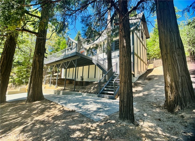 Nestled beneath towering pine trees, this charming 3-bedroom, 2-bath mountain cottage in Lake Arrowhead offers character at every turn—complete with full lake privileges. Inside, a bright, open floor plan features vaulted ceilings, a cozy loft, and freshly stained wood accents throughout. Expansive windows frame peaceful forest views, filling the home with natural light and a warm, storybook feel. The updated kitchen is fully equipped, and the upstairs laundry adds everyday convenience. Step outside to the spacious front deck and take in sweeping treetop and golf course views and crisp mountain air—your own private alpine retreat. With all appliances included, this home is truly move-in ready. The backyard features a fully fenced area along with a level space ready for your future plans. Ideally situated within walking distance to the Lake Arrowhead Country Club. **Seller is willing to provide concessions**