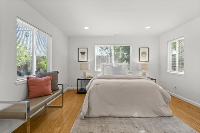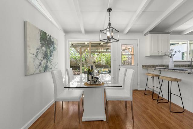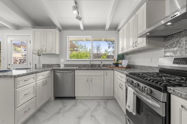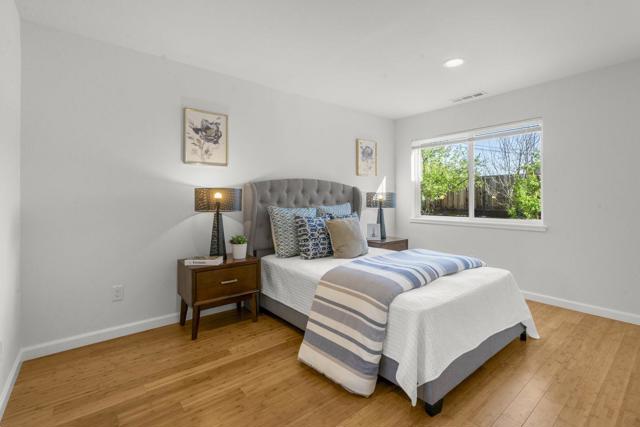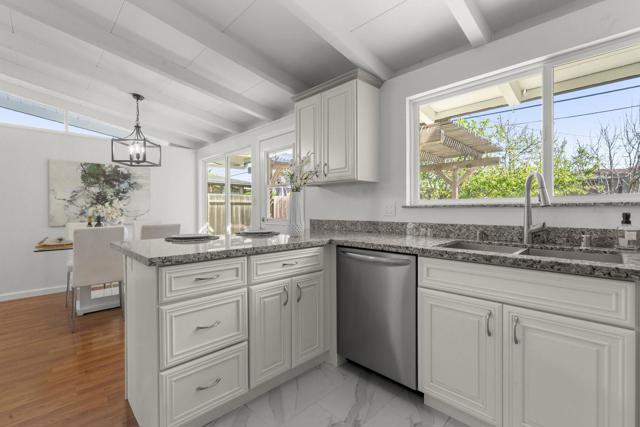 Welcome to a beautiful single-story home in Sunnyvale. Beautifully updated with designer touches. Stunning kitchen with gorgeous countertops and stainless steel appliances. Light-filled living room with large windows. Gorgeous open beam ceilings. Recessed lighting. Tastefully updated bathrooms with modern finishes. Wonderful primary suite with ensuite bathroom and walk-in closet. Double pane windows. Attached two car garage plus oversized driveway. Charming backyard with pergola, paved outdoor dining patio, fruit trees and room for kids or pets to play. Near shopping. Nestled within short walking distance of Lakewood Park with newly constructed library. Convenient commute location near freeways and expressways.