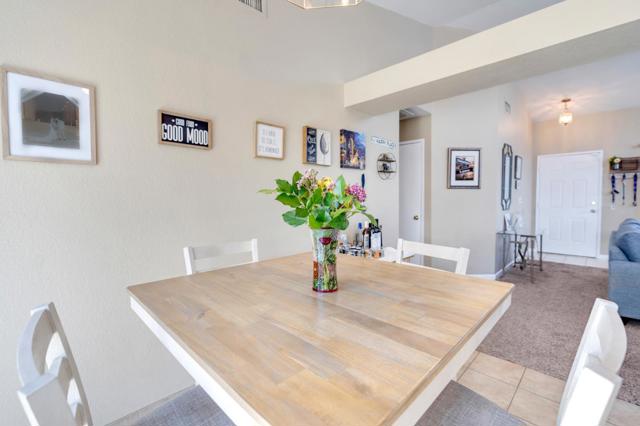 This charming 3-bedroom, 2-bath home offers an ideal blend of comfort and functionality. The spacious, open-concept family room flows seamlessly into a bright and airy kitchen perfect for everyday living and entertaining. Vaulted ceilings in the family room, kitchen, and primary bedroom create an expansive, light-filled atmosphere, while a cozy fireplace adds warmth and character.The kitchen features tile countertops, tile flooring, an electric oven and stove, dishwasher, and a custom decorative plant shelf. Both bathrooms also include durable tile flooring. Step outside to a beautifully finished, low-maintenance backyard complete with turf landscaping and cementideal for entertaining, relaxing, or enjoying year-round outdoor living without the upkeep. Located in a quiet, desirable neighborhood within walking distance to parks, playgrounds, schools, shopping, and dining. Conveniently situated just off Highway 152 for easy commuting.