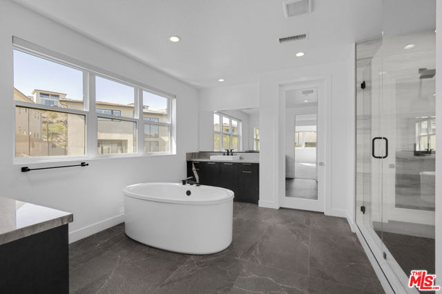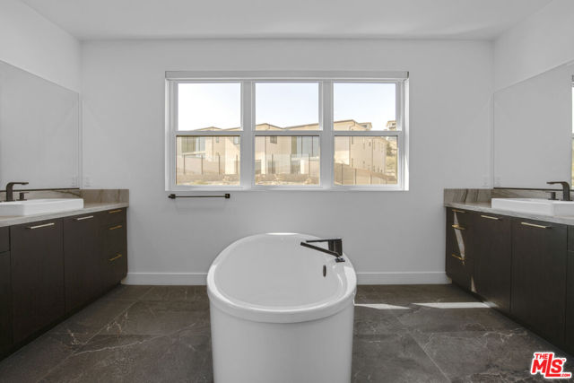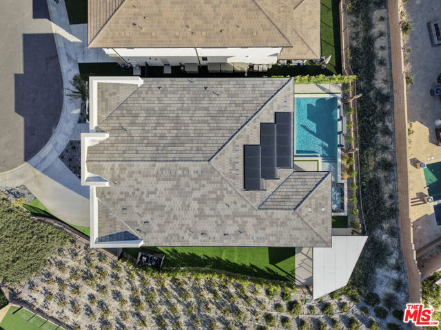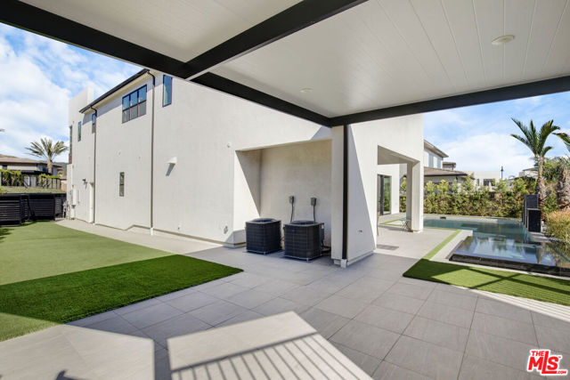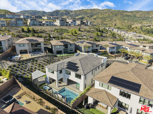 Ultra-Modern Two-Story Estate in Westcliffe, Porter Ranch. This extraordinary residence showcases the highly sought-after Santi floor plan from the prestigious Summit Collection in Porter Ranch's exclusive guard-gated Westcliffe community. Set on a private cul-de-sac and positioned on an oversized flat lot high in the hills, this spectacular estate offers luxury, privacy, and sophistication at every turn. This stunning open-concept home spans approximately 5,400 sq ft and features 5 bedrooms, 6 bathrooms, a spacious loft, flex space, and private office. What truly sets this estate apart is its unique location, expansive lot size, and incredible indoor-outdoor lifestyle. From the moment you enter, you're greeted by a majestic foyer with a dramatic glass staircase and exceptional designer finishes throughout. The home is filled with natural light, enhanced by expansive glass doors and oversized windows, showcasing the beautiful modern color palette and seamless flow. Highlights include stone tile flooring throughout the main level, an oversized great room with a striking 72-inch modern fireplace with color-changing crystals, and a showstopping chef's kitchen with a massive stone island, stone countertops, and top-of-the-line Sub-Zero and Wolf appliances. Elevating the living experience even further, the home is equipped with built-in speakers throughout for a seamless audio experience, electric window shades and owned solar panels.The luxurious primary suite is a true retreat, featuring a spacious sitting area, colossal walk-in closet, dressing area, and an exceptional spa-inspired designer bathroom. All four secondary bedrooms are ensuite, including one conveniently located on the first floor. Additional versatile spaces include an office/media room and fitness gym.Step outside to your own private resort. The spectacular backyard is designed for elevated entertaining and everyday enjoyment, complete with a luxury designer pool and jacuzzi, custom pergola creating the ultimate outdoor lounge..perfect for enjoying a movie under the stars or hosting unforgettable game nights in a resort-style setting, outdoor BBQ, large side area.. an expansive wraparound yard with ample space to relax, host, and enjoy the best of Southern California living. There is also generous parking space, adding to the home's rare functionality and appeal.Located in one of Porter Ranch's most affluent and sought-after communities, Westcliffe offers newly built luxury estates behind a guarded gate entrance. This prime location is just moments from The Vineyards at Porter Ranch, featuring Whole Foods, AMC luxury theater, Nordstrom Rack, fine dining, award-winning schools, and convenient access to the 118 freeway. Be sure to check out the virtual walkthrough video of this exceptional home.