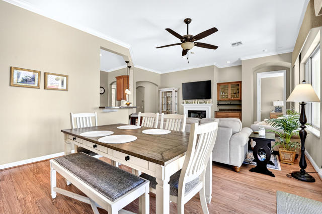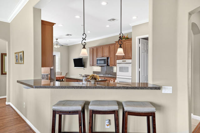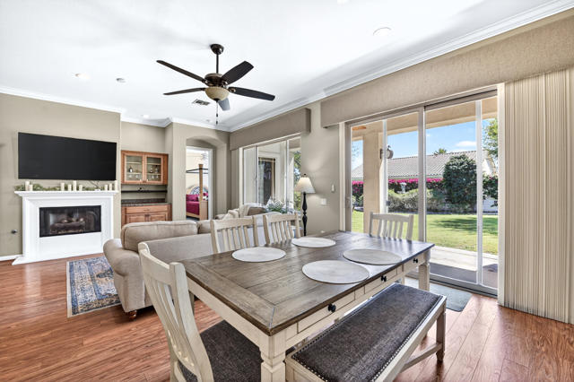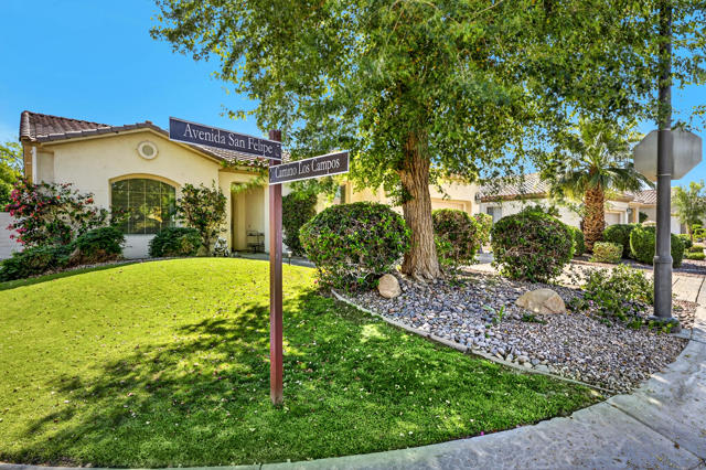 Welcome to this beautifully appointed San Emilio floor plan, ideally situated in Phase 1 of the highly sought-after 55+ community of Sun City Shadow Hills. Encompassing 1,823 square feet of thoughtfully designed living space, this residence is set on an expansive 8,712 square foot corner lot, offering enhanced privacy and an open, airy setting. Ideally located near the Montecito Clubhouse, the home provides both convenience and effortless access to the community's premier amenities. Step inside to a light-filled great room where the open-concept design seamlessly connects the living, dining, and kitchen areas--perfectly suited for both everyday living and elevated entertaining. The kitchen is tastefully appointed with granite slab countertops, abundant cabinetry, a charming breakfast nook, and a generous breakfast bar that anchors the space and invites gathering. The spacious primary suite offers a peaceful retreat, complete with dual vanities, ample storage, and a large walk-in closet. A well-separated guest bedroom and adjacent bathroom provide comfort and privacy for visitors. The den presents a refined and versatile space, ideal as a private office or thoughtfully arranged to accommodate overnight guests. Outdoors, the backyard is designed for relaxed desert living, featuring a covered patio, lush landscaping, and ample space to entertain or create your ideal outdoor retreat. Desirable southern exposure fills the yard with natural light throughout the day, enhancing both warmth and ambiance. Residents of Sun City Shadow Hills enjoy a premier resort-style lifestyle with access to championship golf courses, multiple clubhouses, pools and spas, state-of-the-art fitness centers, tennis, pickleball, and a vibrant social calendar. A rare opportunity to own a home that seamlessly blends comfort, location, and lifestyle--this is desert living at its finest. Furniture and golf cart available outside escrow.