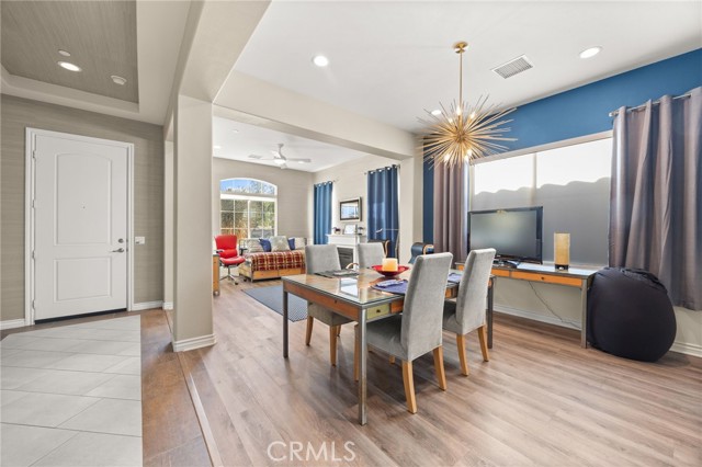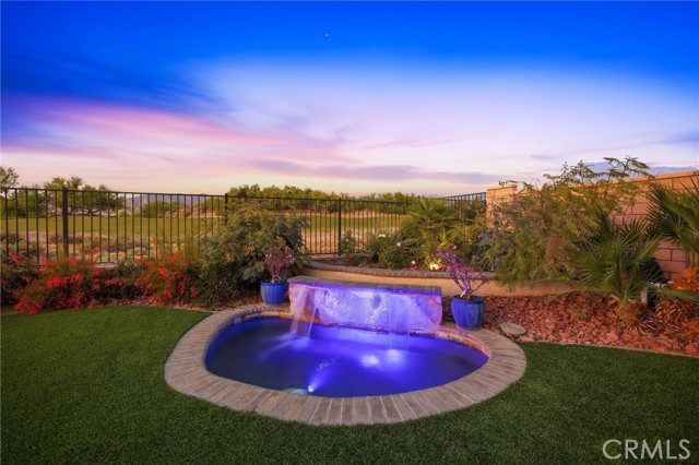 Located in the prestigious Four Seasons at Terra Lago guard-gated 55+ community, this beautiful single-level 2 bed, 2 bath residence offers approximately 2,100 sqft of living space and sits on one of the largest and most private lots in the community, showcasing spectacular unobstructed mountain views. The airy floor plan features soaring vaulted ceilings and abundant natural light, creating a warm and inviting atmosphere. The spacious kitchen is designed for both everyday living and entertaining, showcasing crisp white quartz countertops, rich dark wood shaker cabinetry, a custom tile backsplash, stainless steel appliances including a Wolf range, Bosch dishwasher, and refrigerator, a large walk-in pantry and eat-up counter bar. The kitchen flows seamlessly into the great room and dining area, perfect for gathering with family and friends. The formal living room, currently used as a home office, features a gas fireplace and grass woven wallpaper, adding a designer touch. The formal dining room offers plenty of space to host guests or private nights in. An oversized primary suite offers a peaceful retreat, complete with a spa-inspired bathroom featuring a fully enclosed glass steam shower, soaking tub, dual sinks, custom backsplash, and abundant storage. The secondary bedroom is generously sized with a full bathroom offering a tub/shower combination. Interior highlights include luxury vinyl plank and tile flooring, recessed lighting, ceiling fans, accent chandeliers, dimmable LED lighting, a tankless water heater, humidity control system, state-of-the-art TV and sound system, and an indoor laundry room. Completing the home is a two-car attached garage and exceptional storage throughout. The expansive outdoor space takes full advantage of the oversized lot and mountain views with low-maintenance desert landscaping, artificial turf in the front and backyard, a practice putting green, custom water features, and an above-ground spa with multicolor lighting, creating the perfect setting to relax and enjoy the desert lifestyle. Residents of Four Seasons at Terra Lago enjoy resort-style amenities, including multiple pools and spas, pickleball and tennis courts, a full fitness center, yoga studio, billiards room, library, hair salon, and massage room—all within a vibrant and active community with a low HOA. Ideal as a full-time residence or seasonal lock-and-leave retreat, this home offers the perfect opportunity for buyers seeking a winter escape in the sun.