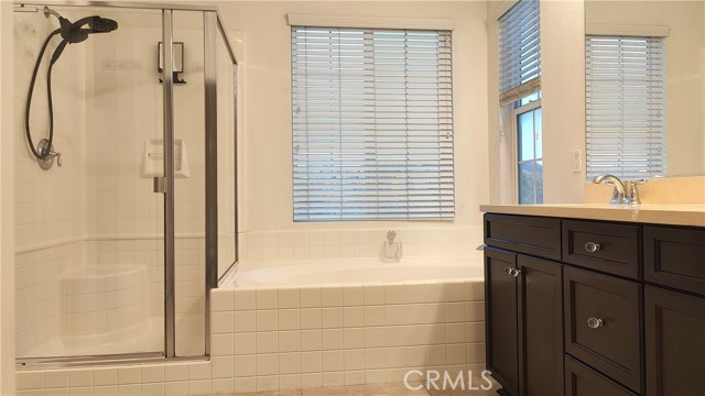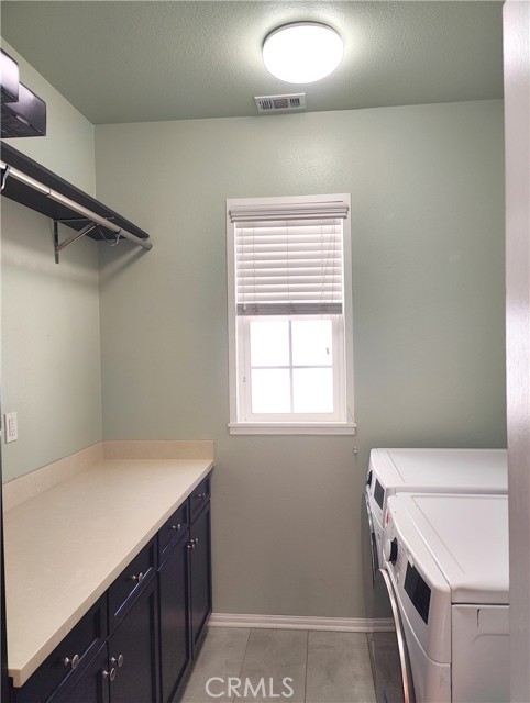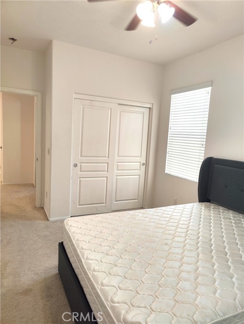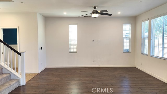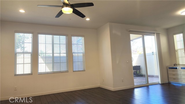 Ontario Ranch detached single family 2 story home with 3 bedrooms, 2.5 baths, and 1758 square feet of comfortable living on a 2,430-square-foot lot lot. House with fully paid off Solar panels worth close to $30,000 so pretty much new homeowners don't have to pay any costly electricity bills. As you enter the house, there is a half bathroom and a good size living room and dining area with patio door to backyard. Also is good size grant countertops kitchen with stainless steal gas stove, range suction hood, dishwasher and a good size walk in closet and direct access to 2 car garage. Other upgrades include lamanite wood flooring for downstairs, upstairs with carpet and laundry room comes with washer and dryer. Upstairs have 2 good size bedrooms sharing a bathroom, and Master bedroom with walk in closets and good size master bathroom. Chip Smith HOA comes with amenities including a clubhouse with a movie theater, gym, banquet rooms, libraries, a game room, and office space, pool and park. Located in the heart of Ontario Ranch, CA, this home is close to big parks, schools, nearby shopping centers, dining, and entertainment, and close proximity to the 60, 71, 15, and 91 freeways. Backyard has flooring done with low maintenance and a patio with fan.