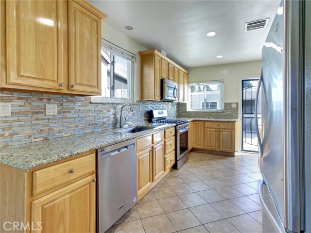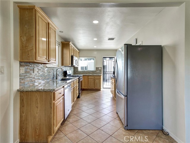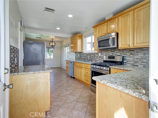 Spacious and well-maintained 2-bedroom home with a versatile bonus room—ideal for a home office, den, or potential third bedroom—offering 1,264 sq ft of comfortable living space on a generous 6,543 sq ft lot. This inviting property features a bright and open layout, complete with a cozy gas fireplace, central heating and air, and ceiling fans throughout for year-round comfort. The remodeled kitchen features granite countertops, stainless steel appliances, and ample cabinetry—perfect for both everyday living and entertaining. The home includes one full bathroom and one three-quarter bath, thoughtfully designed for functionality and convenience. A major highlight is the fully permitted 364 sq ft ADU studio, complete with its own bathroom—ideal for extended family, guests, or potential rental income. Additional features include a two-car garage with laundry hookups and a spacious backyard adorned with mature fruit trees, including lemon and orange—creating a perfect outdoor retreat. This property offers versatility, comfort, and income potential—don’t miss this incredible opportunity!