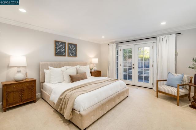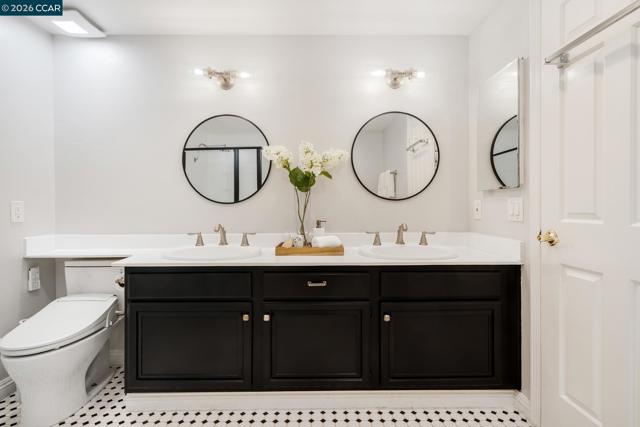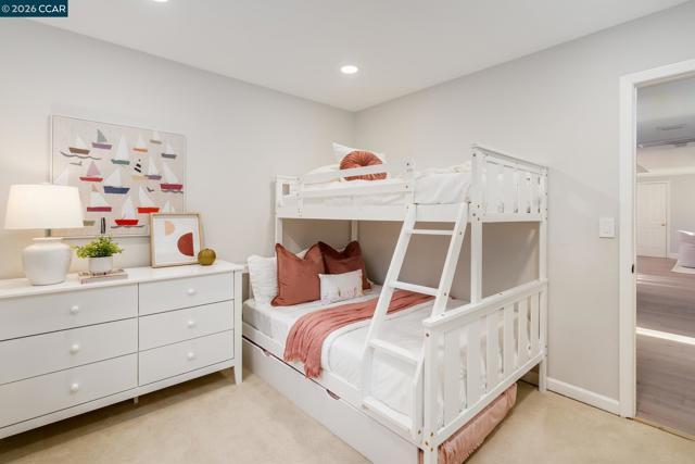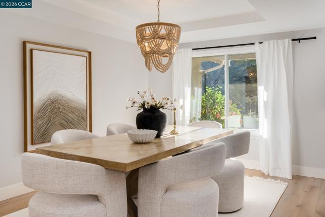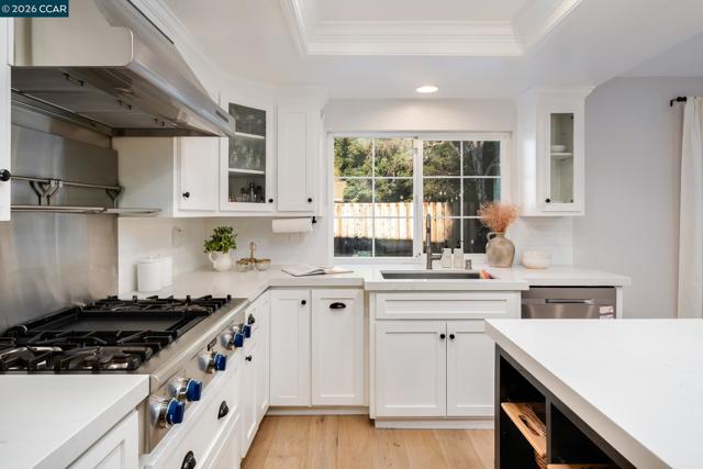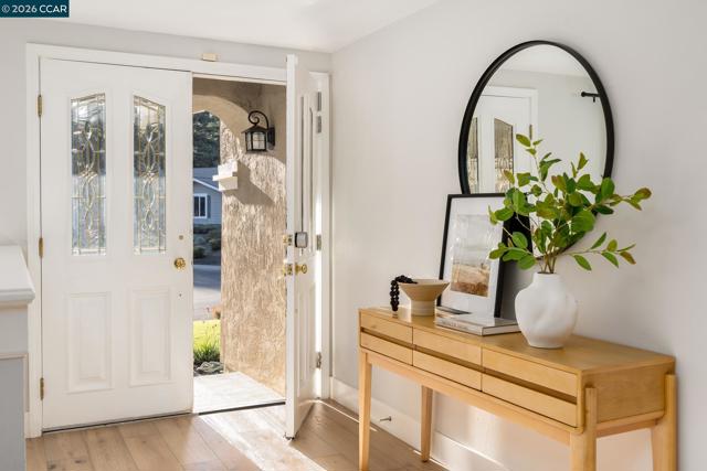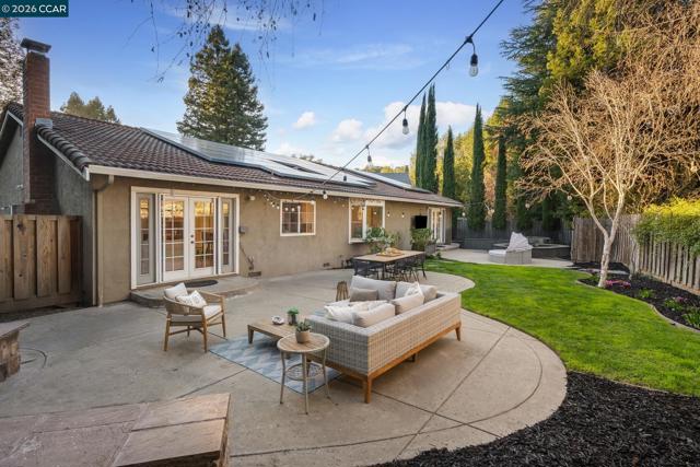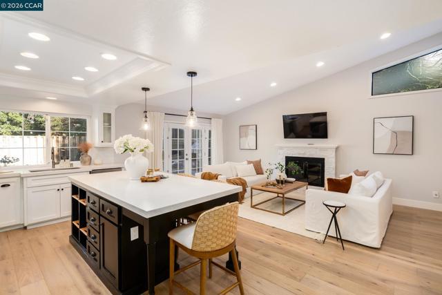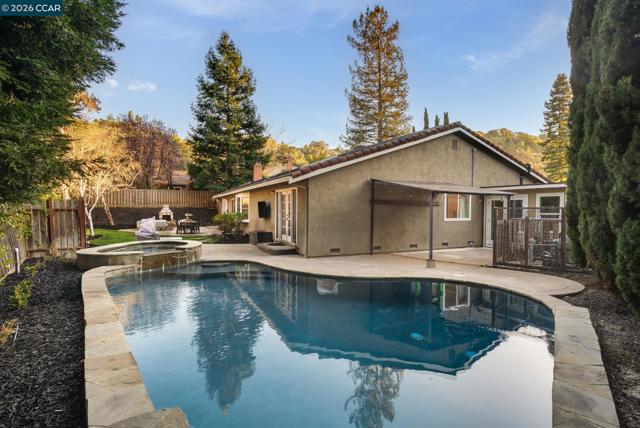 Welcome to this beautifully updated single-story home nestled on a quiet cul-de-sac in the highly desirable Bollinger Hills neighborhood of Westside San Ramon. This light-filled residence offers approximately 2,103 sq ft of thoughtfully designed and extensively updated living space with owned solar and 3 Tesla power walls. Step inside to discover bright, open living areas with hardwood flooring and vaulted ceilings. The spacious living room flows seamlessly into the updated kitchen featuring white cabinetry, quartz countertops, Thermador and Viking stainless steel appliances, and a large island with bar seating opening to the family room. The private, beautifully landscaped backyard is designed for relaxing and entertaining, complete with a pool and spa, built-in outdoor fireplace seating area, spacious patio for outdoor dining, and lush lawn surrounded by mature trees for exceptional privacy. The primary bedroom offers direct access to the backyard, creating a peaceful retreat. Adding versatility, the property also includes a detached studio/office, perfect for a home office, fitness or creative space. Ideally located near top-rated schools, parks, trails, shopping, and dining, this home offers stylish, move-in-ready living in one of San Ramon’s most sought-after neighborhoods.