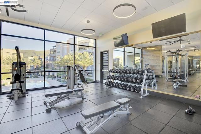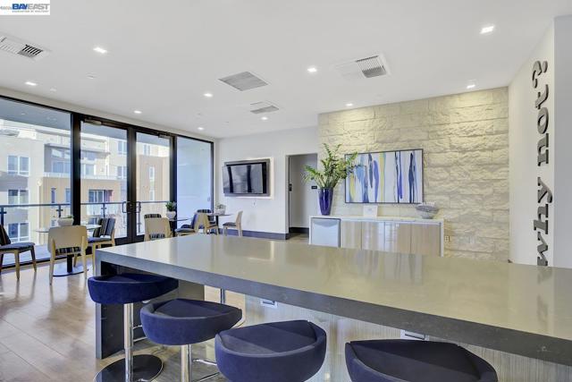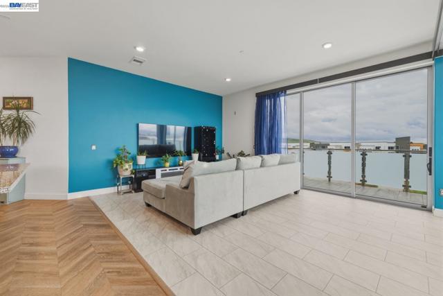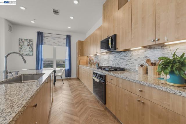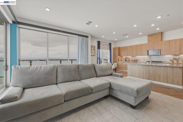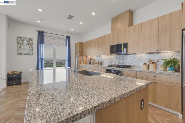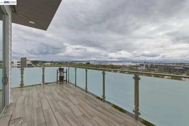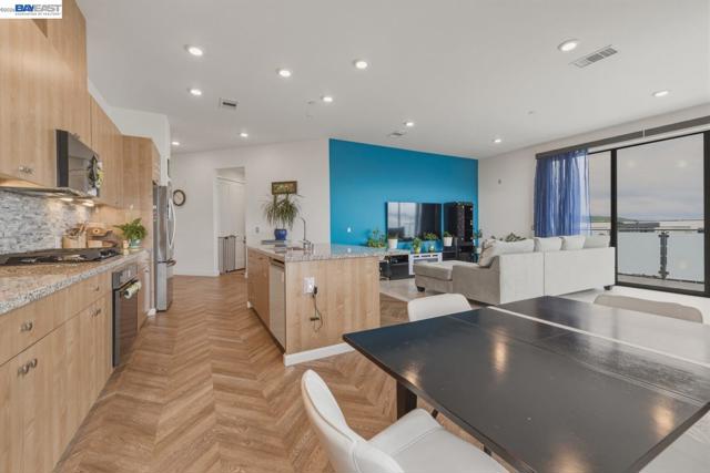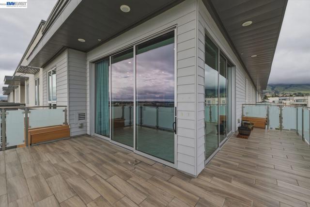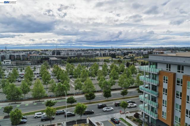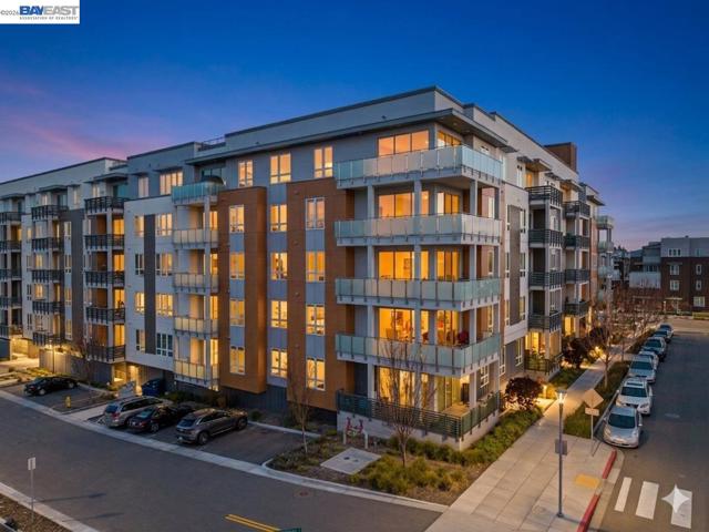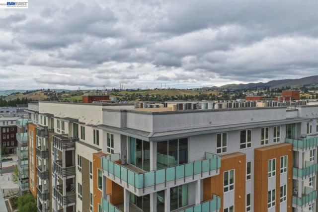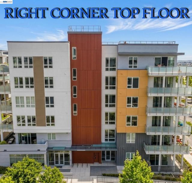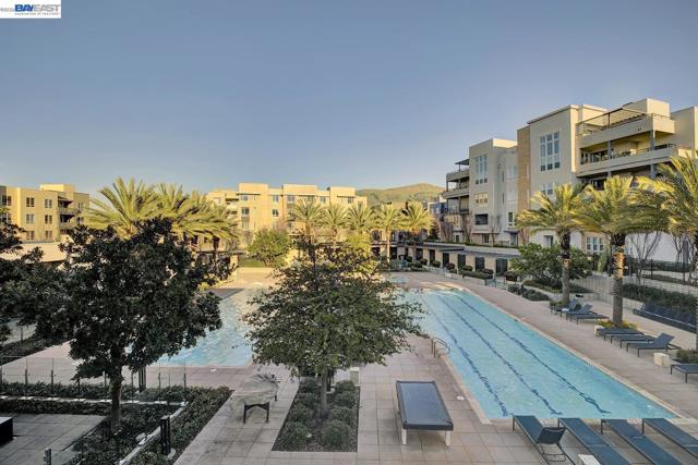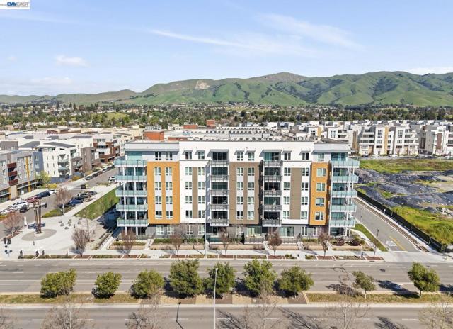 Soaring above the city, this light-filled penthouse showcases panoramic hillside views and a seamless indoor-outdoor lifestyle. Floor-to-ceiling windows flood the space with natural light, while the expansive wraparound balcony offers the perfect setting to relax or entertain. The open-concept design connects the kitchen, dining, and living areas, creating a spacious and inviting atmosphere. A smart split-bedroom layout ensures privacy, with a luxurious primary suite featuring a walk-in closet, dual vanities, and a large walk-in shower. A secondary suite works perfectly as an office or guest room, while the third oversized bedroom is privately positioned—ideal for extended family or visitors. Upgrades include recessed lighting, A/C, in-unit laundry, and generous storage. Two secure garage parking spaces with a community EV charger for added convenience. Community amenities include a pool, spa, fitness center, clubhouse, BBQ areas, and landscaped courtyards with walking paths. Prime location near BART, freeways, Mission Peak, shopping, dining, and major tech hubs.