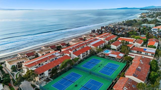 Perched atop the bluff with sweeping ocean views that bring the Pacific into your living room, this coastal residence offers a rare opportunity in one of Solana Beach’s most coveted oceanfront communities. This 2-bedroom, 2-bath home showcases panoramic ocean vistas, vibrant sunsets, and the beauty of the coastline where surfers glide below, seabirds soar, and dolphins + whales occasionally appear. Designed for effortless living, the open layout is filled with natural light, enhanced by thoughtful finishes including tile flooring, granite counters, and expansive dual-pane windows that frame the sea like artwork. A full wall of glass opens to a covered deck, seamlessly blending indoor and outdoor living while capturing the sound of waves, fresh sea breezes, and uninterrupted blufftop views, perfect for morning coffee or sunset evenings, sometimes even revealing the elusive green flash. Solana Beach & Tennis Club features resort-style amenities including tennis courts, pool, spas, recreation room, and a view lounge, along with direct beach access just steps away. The property includes two reserved garage parking spaces, EV charging, additional storage, and convenient access for easy living. Ideally located just moments from the Cedros Design District, with its vibrant mix of shops, galleries, restaurants, the train station, and some of North County’s most desirable coastal attractions. Whether as a primary residence, second home, or investment, this is a rare chance to own true oceanfront living on the bluff.