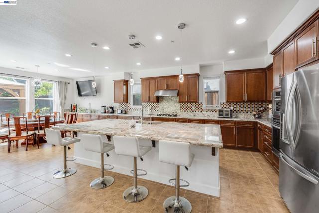 Rare single-story "Victory" model on a large lot in desirable Vista Del Mar! This hard-to-find 4-bedroom, 3.5-bathroom masterpiece features an exceptional open-concept layout designed for seamless entertaining. The gourmet kitchen is a chef’s dream, boasting an oversized center island, upgraded stainless appliances, and ample cabinetry, all flowing into a family room anchored by a cozy fireplace and built-in surround sound. The versatile floor plan includes two spacious bedroom suites plus two additional guest rooms and ceiling fans throughout. Modern laminate and tile flooring lead you outdoors to a stunning California Room. Experience ultimate privacy with no rear neighbors, scenic hillside views, a private orchard setting, and a generous gazebo. This is a rare combination of luxury, functionality, and tranquil indoor-outdoor living!