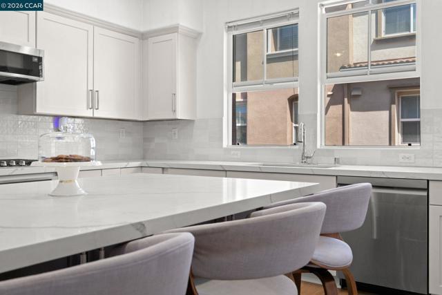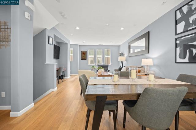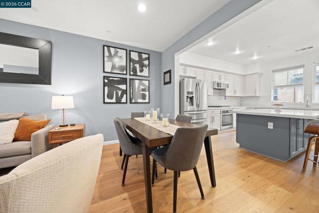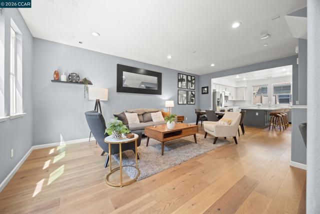 Beautifully updated townhome-style condo in Hayward's desirable Burbank neighborhood with bright open living, engineered wood flooring, a remodeled kitchen, bonus room, and attached 2-car garage. This 3-bedroom, 2.5-bath home offers 1,704 sq ft of open, functional space with high ceilings, recessed lighting, dual-pane windows, stainless steel appliances, walk-in closets, a laundry room, and a first-level bonus room ideal for a den, media room, office, or flex space. The kitchen was remodeled in 2023 with new countertops, backsplash, sink, microwave, range, and an extended island with seating, plus a walk-in pantry and generous cabinet storage. Seller updates continue with a new washing machine in 2024, new engineered wood flooring on the ground and first levels in 2025, new water heater in 2025, and new dishwasher in 2025. In 2026, the stair carpet was replaced and the baseboards and trim were repainted. Community amenities include parks, BBQ areas, playgrounds, and bocce ball courts. Convenient to Downtown Hayward, shopping, dining, the library, BART, Amtrak, and 880, 580, and 92. Low HOA of $265/month. Open House Sat & Sun 4/4 12-2PM & 4/5 2-4PM