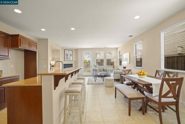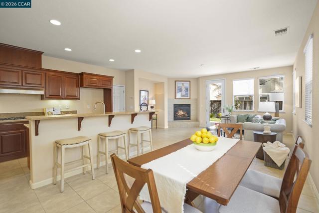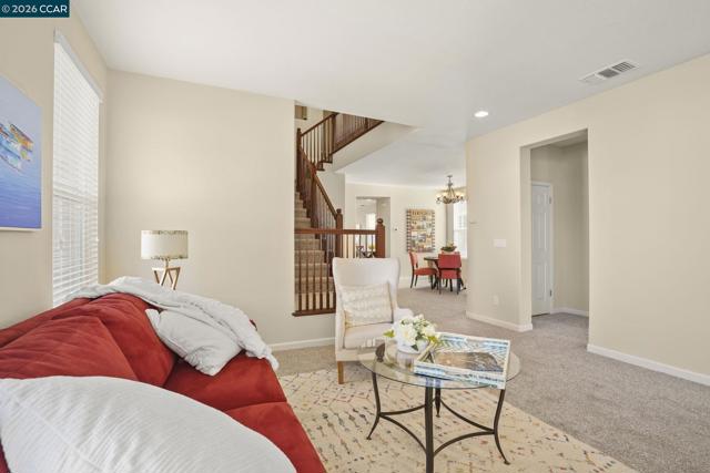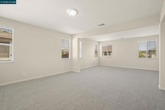 This spacious 3127 sq.ft. home is located in the desirable master planned gated community of "The Lakes", truly a resort with 3 pristine lakes and fountains surrounded by walking paths, playgrounds, tennis courts, a bocci ball area, pickle ball courts, movies and even music in the park. You can also explore the waterways of the Delta, views of Mt. Diablo, nearby trails, open spaces and the great outdoors. A great open kitchen and family room concept is ideal for a fabulous flow of entertainment. In the kitchen, you will find granite countertops, stainless steel appliances, a bountiful pantry and a large island with breakfast bar and casual dining area. The separate dining area and living room beam from natural light from abundant windows and volume ceilings. The primary bedroom is huge - a sitting area or personal office area can easily be accommodated. In addition, there is a large loft upstairs for family activities. Fresh paint and carpet allows this home to be ready for immediate move in and the low maintenance landscaped back yard gives you extra time to enjoy Delta Living. This home has an oversized 3 car tandem garage which will accommodate a boat, all your toys and a long driveway to welcome friends. Move to Discovery Bay where your neighbors "live where they play".