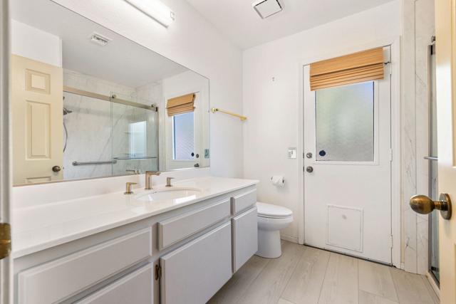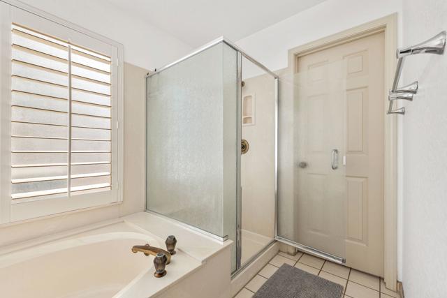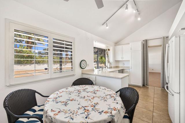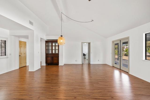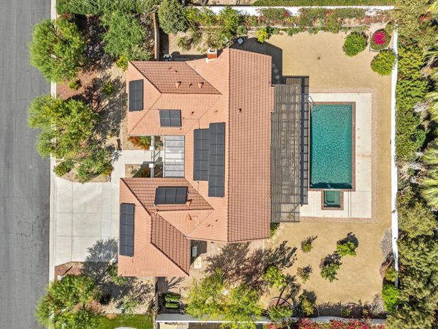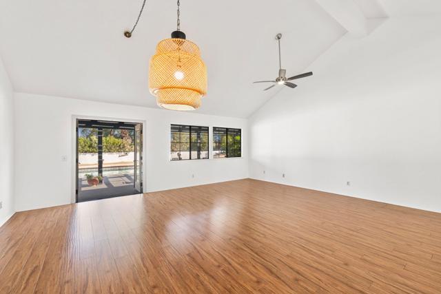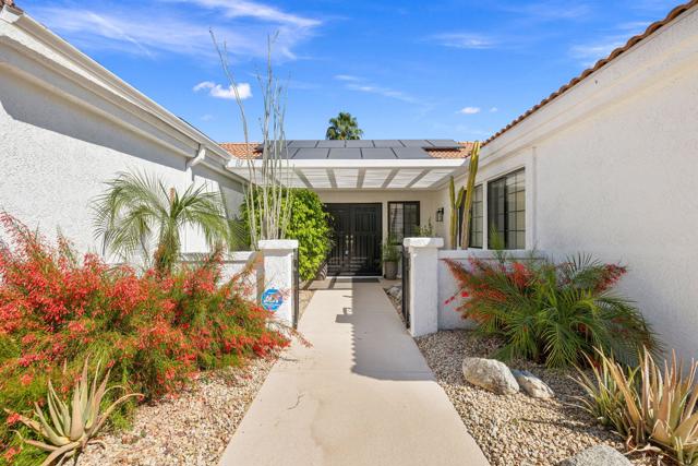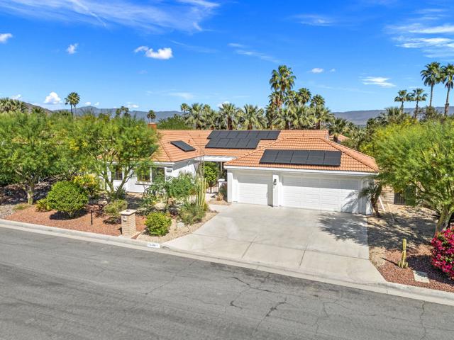Absolutely immaculate South Palm Desert home tucked away on a quiet street with beautiful mountain views. The beautifully landscaped front entry and private patio create an inviting first impression. Inside, the spacious living room features vaulted ceilings, a dining area, and French doors that open to the rear yard for seamless indoor-outdoor living. The separate family room offers a cozy fireplace and another set of French doors leading to a charming side patio. Just off the family room, the breakfast area and kitchen overlook the expansive backyard. The peninsula kitchen is finished with oatmeal-toned Corian countertops and newer appliances. The split-bedroom floor plan provides ideal privacy, with the primary suite enjoying direct backyard access through French doors, a walk-in closet, upgraded vessel sinks, and custom water fixtures. The backyard is truly an entertainer's retreat, featuring a large pebble-finish pool and spa surrounded by breathtaking west-facing mountain views, along with stunning north and east views of the Little San Bernardino and Eisenhower Mountains. This is a special home that must be seen to be fully appreciated.