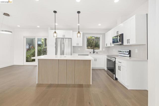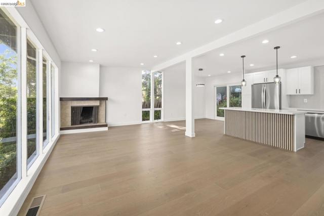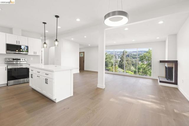 Completely remodeled and move-in ready, this home has been fully transformed with all-new finishes and systems throughout. Bright, open living, dining, and kitchen spaces are filled with natural light from large windows, creating an ideal setting for both everyday living and entertaining, with views of the Oakland Hills. The brand-new kitchen features new countertops, backsplash, appliances, and fixtures, while both bathrooms are entirely new with modern design and finishes. Additional upgrades include new hardwood floors, new lighting, and new HVAC, delivering a true turnkey experience. Functional two-bedroom, one-and-a-half bath layout designed for comfortable, modern living. Ideally located just minutes from the Laurel District's shops and restaurants, Mills College, and Lake Merritt, with easy access to Hwy 580/880 and Fruitvale BART for a seamless commute.