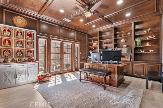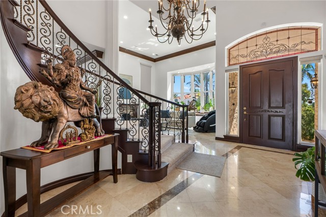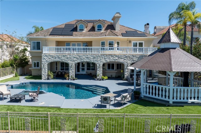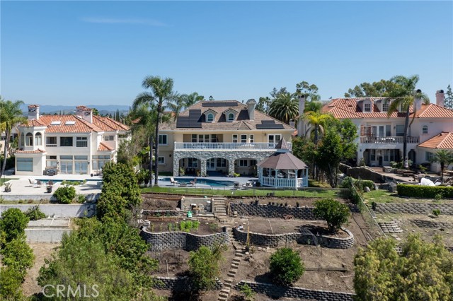 This stunning custom-built French Tudor estate is nestled in the highly sought-after equestrian community of Nellie Gail Ranch, in the heart of South Orange County. Showcasing timeless architecture and exceptional craftsmanship, this impressive residence offers an unparalleled blend of elegance, comfort, and lifestyle. Spanning approximately 6,826 square feet on an expansive 21,200 square foot lot, the home features 5 spacious bedrooms including a desirable main-level suite 4.5 bathrooms, a private office, three fireplaces, and two balconies. The thoughtfully designed floor plan provides both functionality and sophistication for everyday living and entertaining. A gated driveway enhances privacy while offering ample parking and a secure space for outdoor play. Upon entry, you are welcomed by soaring ceilings and a dramatic winding staircase that sets the tone for the home’s warm and inviting ambiance. Designed to take full advantage of its surroundings, the backyard and upper-level balconies showcase breathtaking west-facing panoramic views of rolling hills and vibrant sunsets. The resort-style outdoor space is an entertainer’s dream, complete with a sparkling pool and spa, gazebo, and built-in BBQ perfect for hosting gatherings or enjoying peaceful evenings at home. Residents of Nellie Gail Ranch enjoy scenic walking paths, equestrian trails, and a true sense of community, all while benefiting from convenient access to the 73 Toll Road for an easy commute bypassing the congestion of the 5 and 405 freeways. This is a rare opportunity to own a remarkable home in one of Orange County’s most prestigious neighborhoods.