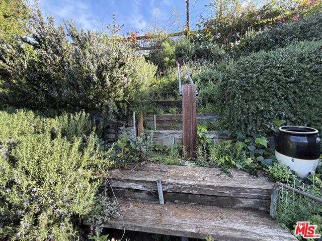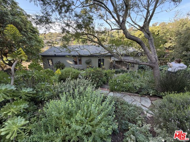 Charming home set on hillside with great canyon view and partial view toward Pacific Ocean. Upper Mesa Rd is at rear of property, not currently traversable.