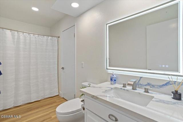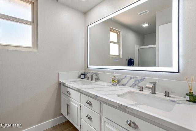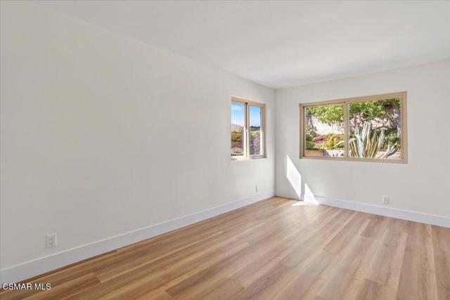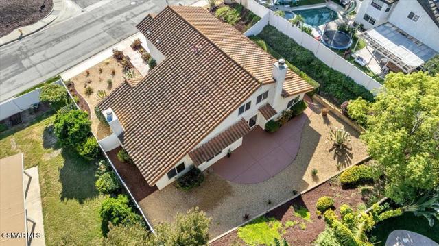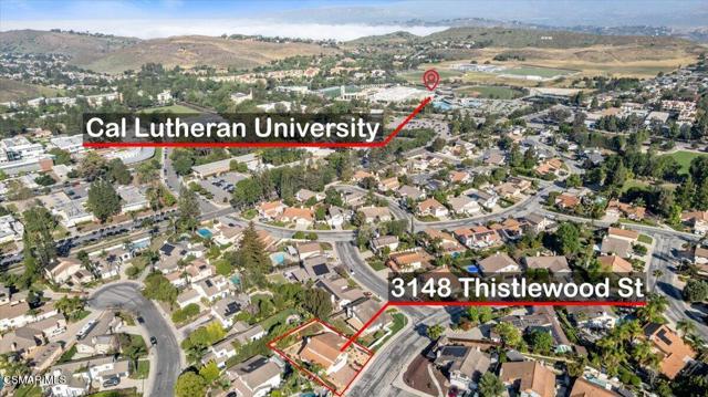 START FRESH--LIVE BETTER--Welcome to a beautifully upgraded home in one of the most sought-after neighborhoods near -- California Lutheran University -- where comfort, style, and convenience come together. A spacious 4-bedroom, 3-bathroom home offers 2,471 sq ft of living space on a generous 7,840 sq ft lot, complete with a 3-car garage. From the moment you arrive, you're greeted by a charming brick entry and elegant caramel-colored wood double doors that set the tone for what's inside. Step through the front door to soaring cathedral ceilings and a light-filled interior freshly painted with Dunn-Edward's designer tones with crisp white ceilings and trim creating a warm yet modern aesthetic throughout. Brand-new waterproof flooring flows seamlessly in the home, complimented by new countertops throughout. The kitchen and family room feature new striking modern concrete colored quartz surfaces, while the bathrooms showcase updated quartz white countertops with a refined blue satin finish. The chef's kitchen is thoughtfully designed with a stainless-steel sink, integrated cutting board, vegetable washing tray, and drying rack, along with a sleek five-burner gas cooktop and stainless-steel hood--perfect for both everyday cooking and gatherings. The kitchen open concept flows into the family room which includes a bar counter and a gas fireplace ready for entertaining. The main suite is generously sized, offering a large walk-in closet and a spacious bathroom with dual sinks and a walk down shower tub. The second bathroom upstairs also features dual sinks and a shower-tub combination, the fourth bedroom downstairs provide exceptional flexibility for multi-generational living, complete with its own walk-in closet and en-suite bathroom with dual access--conveniently serving both the bedroom and visitors. Enjoy cozy evenings by either of the two brick hearth gas fireplaces, located in both the living room and family room. Step outside to a beautifully resurfaced backyard patio in a rich mission red tone, surrounded by thoughtfully designed drought-resistant landscaping with native shrubs--perfect for relaxing or entertaining with minimal maintenance. Thistlewood home's location is truly unbeatable. Springfield Park is down the street featuring workout centers, basketball court, fields for soccer, football & baseball, stroller path, playground, creek to catch Crawdads, picnic tables and allows dogs. You're just a short walk to California Lutheran University, including access to public lap pool and public play pool for family and kids. Scenic trails through Mount Clef Ridge--ideal for hiking and mountain biking. Everyday conveniences are also walkable, including Trader Joe's and a variety of popular dining options. With its extensive upgrades, flexible layout, and prime location, this exceptional home offers the perfect blend of lifestyle and livability. --MUST SEE--, Thistlewood won't last long!