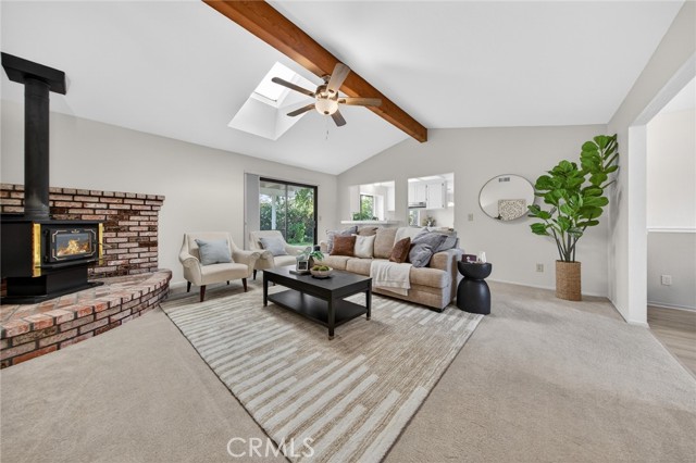 Nestled at the end of a peaceful cul-de-sac, this beautifully cared for 3-bedroom, 2-bathroom home offers the perfect blend of comfort and space for everyday living. From the moment you arrive, you’ll be impressed by the manicured landscaping, attached 2-car garage, freshly painted exterior, charming brick accents that create exceptional curb appeal. Step inside to discover softly painted walls, an abundance of natural light and a spacious formal living room that flows effortlessly into the expansive family room, creating an ideal setting for entertaining. The inviting family room is full of character and features a striking wood beam ceiling, skylight and a centrally located brick fireplace that brings warmth and charm to the space. The bright and open kitchen is sure to delight any home chef. Outfitted with crisp white cabinetry, tile countertops, convenient breakfast bar and a dining area just steps away, it offers everything you need for preparing meals and gathering with family and friends. When it’s time to unwind, escape to the spacious primary suite. This relaxing retreat offers ample room, private access to the backyard, a generous walk-in closet and an en suite bathroom complete with a large vanity area and walk-in shower. Outside, the backyard feels like your own private park. Enjoy summer barbecues beneath the covered patio, plenty of lawn for outdoor games and activities, space for a garden and mature landscaping along the fence line that provides both beauty and privacy. Located in a serene neighborhood with no through traffic, this exceptional home is one you won’t want to let pass you by.