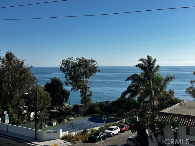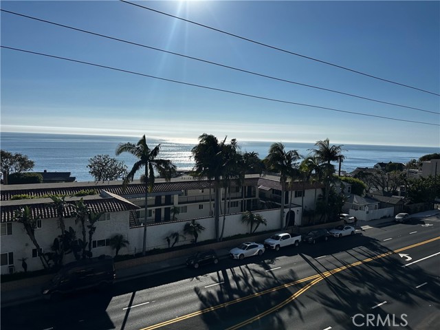 Coming Soon: Top-floor center unit in the front building, closer to the ocean. Expansive coastal views of the ocean, Catalina Island, sunsets, and city lights from the covered front balcony. Across PCH from Moss Cove.