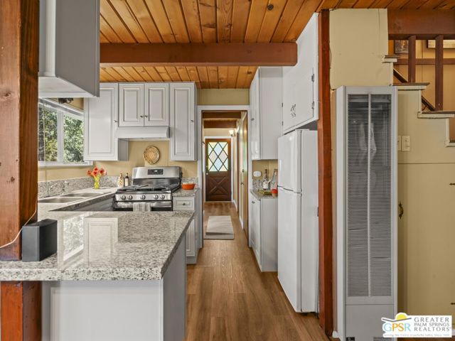 Idyllwild mountain cabin with loft & fireplace. Lofted mountain cabin with a cozy fireplace, main level bedroom, & low-maintenance fenced yard, just minutes from town. This charming cabin strikes a balance between peaceful surroundings & convenient access to local shops, galleries, dining, entertainment & outdoor activities. Imagine unwinding by the fireplace after a day exploring nearby trails or enjoying a quiet morning taking in the crisp mountain air. Rustic character pairs with thoughtful modern touches & vintage accents to create a warm & inviting atmosphere. The layout includes a main-level bedroom, loft bedroom & two bathrooms, offering flexibility for weekend getaways or full-time living. Also included is a 10' x 10' insulated shed with electricity, a window, luxury vinyl flooring, & tongue-and-groove interior finishes. Nearby trails & outdoor recreation make it easy to experience the area's natural beauty all seasons. From peaceful evenings by the fire to sun-drenched days outdoors, this cabin evokes the Idyllwild lifestyle. Whether you're seeking a quick escape to relax & recharge or a full-time residence, this cabin embodies the spirit of simple mountain living.