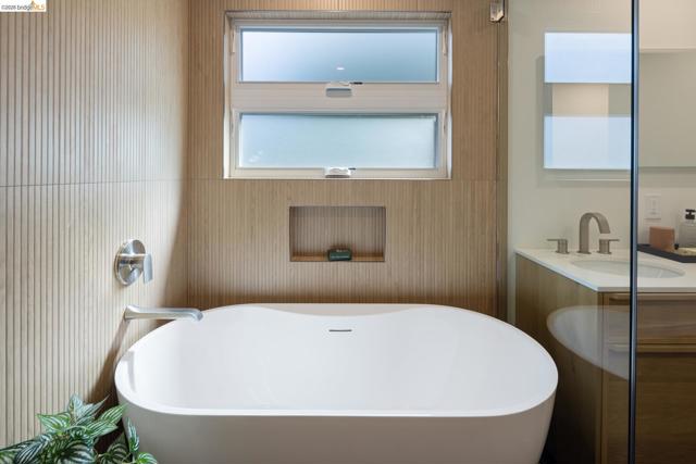 Welcome to 6808 Del Monte—an exceptional residence where refined design meets effortless California living, with stunning views of the SF Bay and Wildcat Canyon Hills. Thoughtfully rebuilt with a modern aesthetic and timeless appeal, this sophisticated home offers an elevated lifestyle in a desirable setting. Completely reconstructed down to a single remaining wall, the home features all-new electrical and plumbing, a new roof, 95% of the foundation, and a state-of-the-art solar system with storage batteries and an EV charger—delivering both sustainability and efficiency. Inside, a light-filled interior showcases expansive windows, clean architectural lines, and high-end finishes throughout. The open-concept living and dining areas flow seamlessly, ideal for everyday living and entertaining. The beautifully updated kitchen features premium appliances, sleek cabinetry, and stylish surfaces. Generously sized bedrooms and spa-inspired bathrooms offer comfort and tranquility, while the primary suite serves as a true sanctuary. The private backyard embraces a natural setting, offering a low-maintenance landscape with ample potential to create a beautiful garden retreat. Ideally located near Wildcat Canyon trails, the serene Gyuto Foundation, and convenient to the Arlington Market.