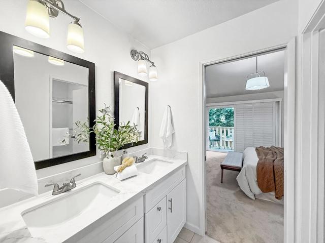 Welcome to this well-maintained townhouse-style condominium in a centrally located Mountain View community. This two-story home features a functional layout with laminate flooring throughout the main living areas, a cozy fireplace, and an updated kitchen with quartz countertops, stainless steel appliances, and ample cabinetry. A convenient half bathroom is located on the ground level. Upstairs, two well-proportioned bedrooms offer comfortable living, including a larger bedroom with access to a private balcony overlooking the backyard patio. The full bathroom has been updated with a modern vanity, and the upper-level laundry area adds everyday convenience. The spacious private backyard patio provides a great setting for outdoor dining or relaxation and opens toward the community's landscaped grounds. As an end unit, the home benefits from added privacy and natural light. Additional features include a detached one-car garage, an assigned parking space, and access to Country Village HOA amenities, including a community pool and walking paths. Ideally located near Downtown Mountain View and Castro Street, known for its boutique shops, cafes, and restaurants, this home also offers convenient access to parks, major employers, and key commute routes.