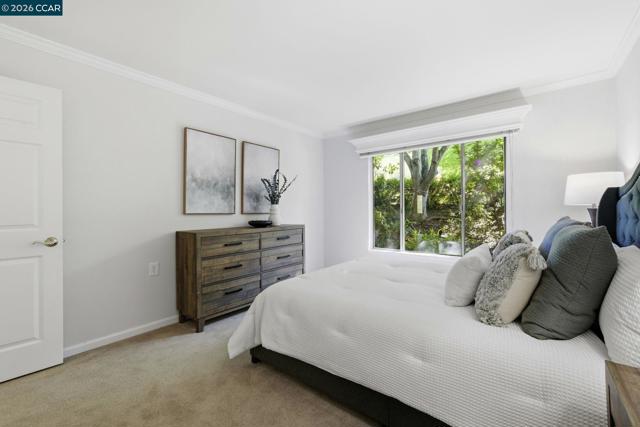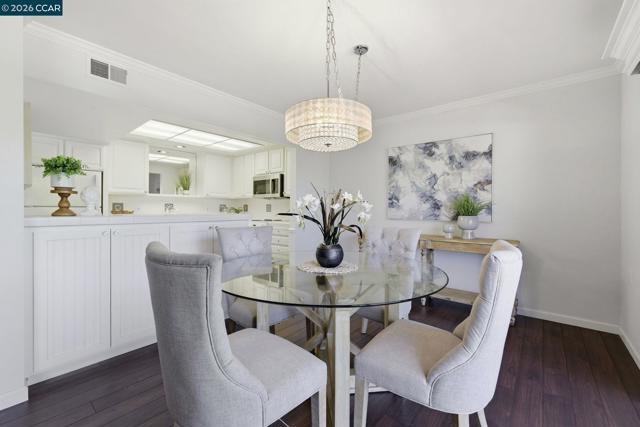 Sonoma Wrap with true primary suite! Nestled in the highly sought-after active adult community of Rossmoor, this desirable 2-bedroom 2-bath corner-unit Sonoma Wrap model offers an unparalleled blend of size, style and comfortable living. From the moment you step inside, you will be captivated by the abundant natural light, highlighting the rich hard-surface flooring that flows seamlessly throughout the home. The spacious floor plan has been meticulously updated with smooth ceilings and elegant crown molding, adding a polished, modern touch to the interior. The rare primary suite offers a peaceful, private retreat with generous dimensions and exceptional comfort. The large veranda is perfect for al fresco dining, morning coffee, or simply unwinding while taking in the serene surroundings this expansive outdoor space truly extends your living area. Situated in an ideal location close to Rossmoor's world-class amenities—including golf courses, pools, fitness centers, and miles of trails—this home represents the very best of the Rossmoor lifestyle!