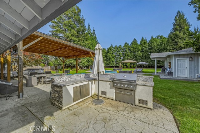 Welcome to your dream home! This gorgeous, fully remodeled 4-bedroom, 2.5-bathroom property offers over 3,000 sqft of beautifully updated living space on a full acre—giving you the perfect blend of comfort, style, and functionality. Every detail has been thoughtfully upgraded, creating a modern and inviting feel throughout. The spacious layout includes a versatile bonus room—ideal for a home office, playroom, or additional living space. Step outside and experience your own private oasis with a sparkling pool complete with a heater, an above-ground spa, and a large covered patio featuring a built-in BBQ kitchenette—perfect for entertaining year-round. The property also includes owned solar for energy efficiency and savings. Plus, a detached pool house offers incredible flexibility with 1 bedroom, 1 bathroom, a living area, and its own heating and cooling—perfect for guests, extended family, or potential rental income. This one truly has it all—space, upgrades, and endless possibilities. Unlock your happiness right here!