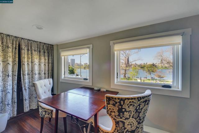 Stunning lakefront duplex with unmatched charm. A remarkable opportunity to own a gorgeous duplex that boasts breathtaking views over Lake Merritt. This beautifully renovated Mediterranean-style masterpiece perfectly combines classic elegance with modern amenities, offering an exceptional living experience. Step inside to find a chef's kitchen, paired with tastefully remodeled bathrooms that exude a contemporary flair. The thoughtful layout features spacious interiors adorned with pristine hardwood floors throughout, ensuring both comfort and style in every room. Both units are 2 bedrooms and 2 baths with options for a den, family room, or a third bedroom. Dramatic windows showcase panoramic lake views, perfect for watching the sunset. The upper unit includes a charming Juliet balcony for enjoying morning coffee with a view. In addition to the two upper units, a bonus space on the 3rd bottom level has been converted into a studio with a separate entrance. Whether you're seeking a unique family residence or an exceptional investment opportunity in the vibrant Oakland market, this duplex is poised to impress. Don’t miss your chance to make this extraordinary property your own—where the beauty of Lake Merritt meets the charm of a carefully crafted home.