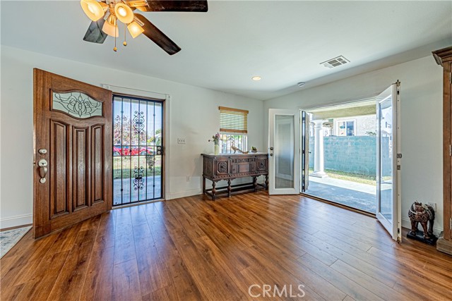 Rare opportunity to own a newer-built home (2011) in a neighborhood primarily known for older properties with crawl space foundations. This well-designed residence offers a spacious open-concept layout, where the expansive living room seamlessly connects to the dining area and kitchen—ideal for both everyday living and effortless entertaining. Two elegant French doors open to the side patio, creating a desirable indoor-outdoor flow. The first floor features a generously sized bedroom with multiple access points, perfect for guests, extended family, or flexible living arrangements. A convenient laundry room with direct backyard access adds everyday functionality. Upstairs, you’ll find 3 additional bedrooms and a full bathroom. One bedroom offers a private balcony, providing a unique retreat. A versatile bonus room adds valuable flex space—ideal for a home office, gym, or playroom. Recent upgrades include fully renovated flooring, recessed lighting throughout, and a new tankless water heater for enhanced efficiency. A long driveway leads to a spacious two-car garage, while the expansive backyard—with alley access—offers excellent potential for an ADU. Perfect for those seeking space, flexibility, and future opportunity, this home truly has it all.