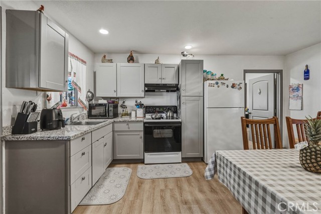Property features multiple living spaces totaling approximately 1,372 sq ft (per appraisal). Original structure currently 557 sq ft structure being used as a 2-bedroom, 1-bath ADU. Main residence currently configured as 3 bedrooms and 1 bath. Rooms are currently used as bedrooms but may not include built-in closets. Buyer to verify square footage, bedroom count, ADU legality, and all other information to their satisfaction.