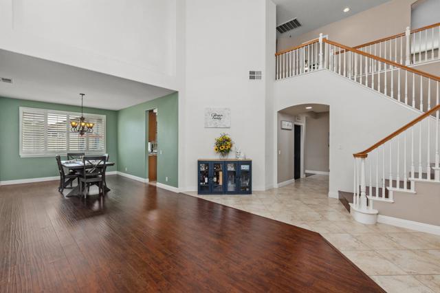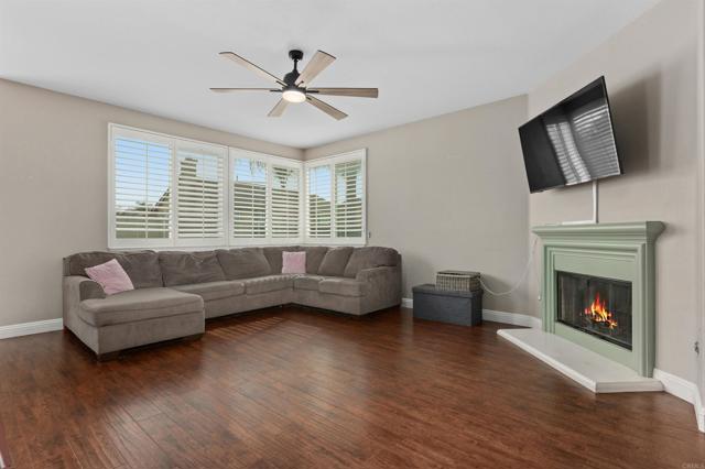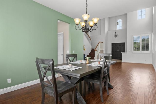 This spacious and well-appointed 4 bedroom, 3 bathroom home with no HOA in Murrieta offers an open concept layout with abundant natural light with generous living and dining areas. This home is equipped with dual AC units & solar panes to stay cool while saving on electricity. Take pride in your formal double door entry and cathedral ceilings, and an inviting fireplace in the family room that flows to the kitchen and breakfast nook. The kitchen offers a walk-in pantry, a center island, and granite countertops. The versatile main-floor bedroom with a full bath is ideal for guests or multi-generational living. The kitchen flows seamlessly into the family room, perfect for entertaining. Upstairs, enjoy a large loft and a large private primary suite with a double-door entry, dual vanities, walk-in shower, soaking tub, and walk-in closet. Situated on a 7000+ sq ft lot with a 3-car garage, and spacious yard, this home offers comfort, space, and convenience near schools, parks, shopping, and commuter routes.