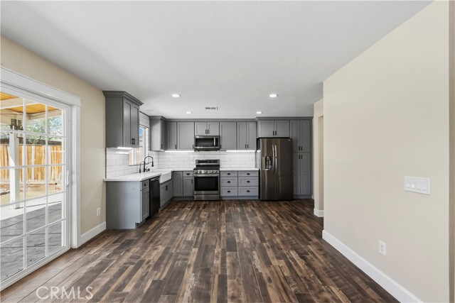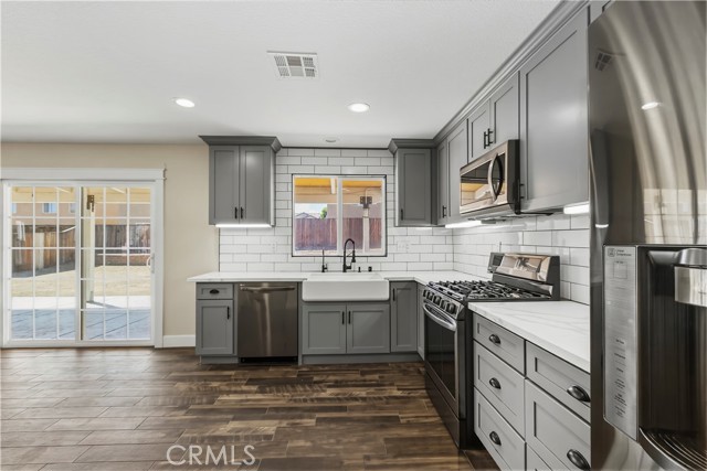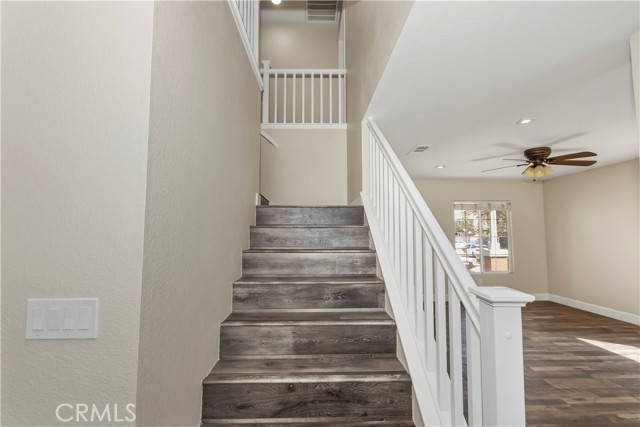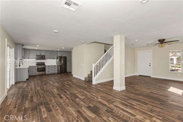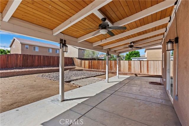 Welcome to this spacious and well-designed home in Hesperia, offering a functional open-concept layout and commuter-friendly location. The main living area seamlessly connects the kitchen, dining, family room, and direct access to the backyard through sliding glass doors- perfect for everyday living and entertaining. The kitchen features modern finishes, stainless steel appliances, ample counter space, and 2 pantries. Upstairs, you’ll find a convenient laundry room and generously sized bedrooms, including a bright and expansive primary suite complete with a walk-in closet and well-appointed bathroom. Step outside to a covered patio with ceiling fans, ideal for relaxing or hosting year-round. The backyard offers a blank canvas with plenty of space to design your dream outdoor setup, whether that includes a pool, play space, or garden. Additional highlights include no HOA, low taxes, and a prime location just minutes from the freeway, making it ideal for commuters. Conveniently located near local schools, shopping centers, and parks. A great opportunity to own a move-in ready home with room to personalize.
