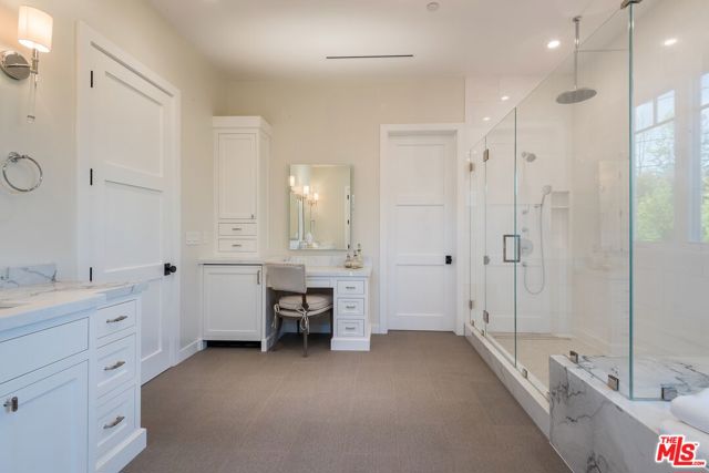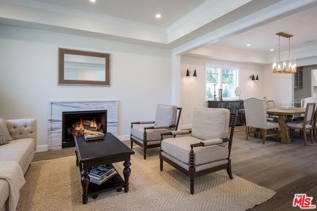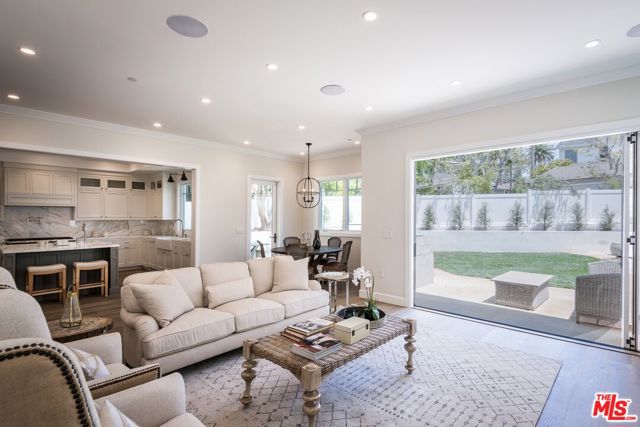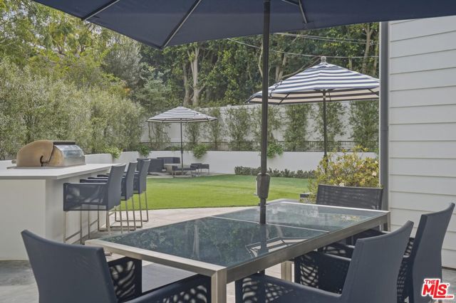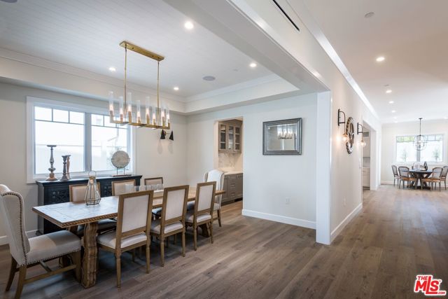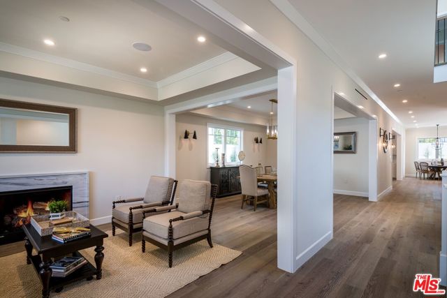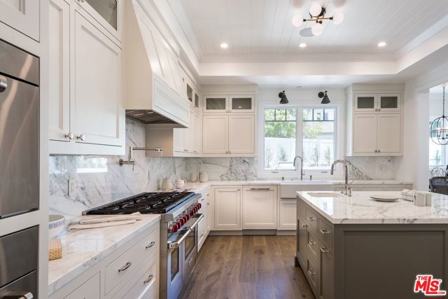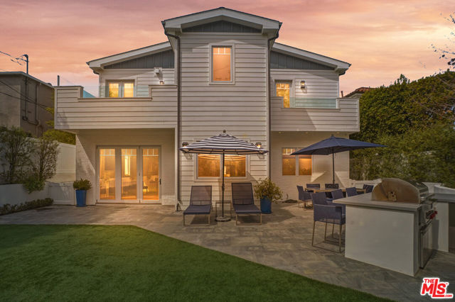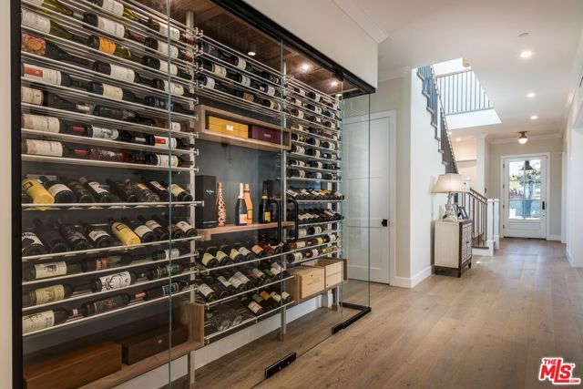 Set in the coveted El Medio Bluffs neighborhood of Pacific Palisades, 530 Arbramar Ave is a beautifully designed 2017 Cape Cod inspired coastal residence that seamlessly blends timeless charm with modern luxury. This 5-bedroom, 6-bathroom home offers an ideal layout for both everyday living and effortless entertaining. A welcoming foyer opens to a warm sitting room with a fireplace, leading into a spacious dining area perfect for gatherings. A striking glass-enclosed, temperature-controlled wine cellar adds a sophisticated focal point. The gourmet kitchen is the centerpiece of the home, featuring a large island, premium Wolf appliances, and a walk-in pantry. The adjacent family room, complete with a second fireplace and accordion-style folding glass doors, opens fully to the backyard creating a true indoor-outdoor living experience ideal for entertaining. The main level includes an en-suite bedroom, ideal for guests or multi-generational living, along with a dedicated theater room for movie nights and gatherings. Upstairs, four additional en-suite bedrooms provide comfort and privacy for all. The luxurious primary suite is a true retreat, showcasing vaulted ceilings, a fireplace, an expansive walk-in closet, and two private balconies that capture the coastal breeze. The spa-like primary bathroom offers a serene space to unwind. The backyard is thoughtfully designed for relaxation and entertaining, featuring lush turf, a fire pit, and an outdoor kitchen perfect for al fresco dining. Additional highlights include an attached two-car garage with an EV charger and direct access into the home.