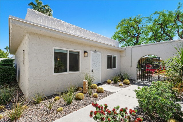Rarely available free standing unit with no common walls located in Central Palm Springs. This open concept, updated unit delivers the best this quaint little complex has to offer including location, design, and move-in ready furnished condition. The updated kitchen features newer appliances, open concept, and the colorful Palm Springs contemporary design you would expect to find in your lock and leave getaway. Both bathrooms are updated, including a large, walk in shower in the primary en-suite bath. Enjoy coffee on your private back patio right off the primary bedroom. Located on the desirable Cottonwood side of the complex, this unit has updated double-pane windows and doors, newer 3-ton, SEER 14 AC/heat pump unit, all creating an energy efficient and quiet experience. Desert Arches, a small, quaint community consisting of 32 units, has just undergone tons of updates including painting of the entire complex, new, modern light fixtures, updated pool equipment, and a new, state-of-the-art entry system by ButterflyMX. The unit comes with one assigned parking spot with plenty of guest parking always available. Whether you're looking for an investment to offer 30 day+ vacation rentals, long term rentals, a second home, or a new home, this property fits the bill. One of the lowest HOA fees in Palm Springs covers all exterior maintenance, roofs, common area gardening, garbage service, water, and maintenance of the two pools (alternately heated during the winter months). On-site laundry makes laundry day a breeze with two washers and dryers just steps from the unit. Easy to show with a couple hours notice. Act fast before it’s gone.
