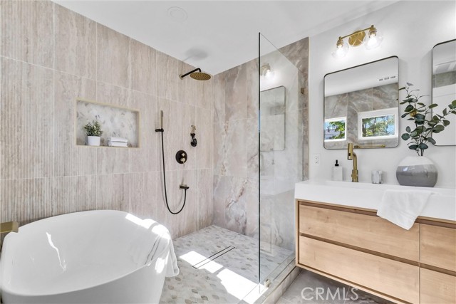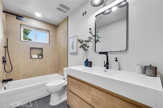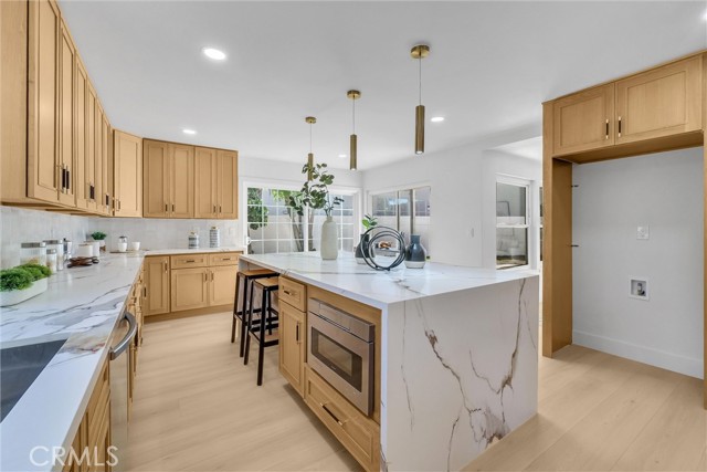 Exquisitely remodeled residence nestled in a prime South Coast Metro enclave of Santa Ana, offering a seamless blend of modern sophistication and refined comfort. This stunning home features 3 beautifully appointed bathrooms and showcases high-end finishes throughout. The designer kitchen serves as the centerpiece of the home, complete with sleek quartz countertops, an expansive island, 5-burner range, pot filler, custom vent hood, and premium self-closing cabinetry—crafted for both everyday elegance and elevated entertaining. The grand living space impresses with soaring ceilings, a striking reimagined fireplace, and an abundance of natural light streaming through oversized windows and sliding glass doors. Spa-inspired bathrooms have been fully transformed, highlighted by a luxurious infinity soaking tub and upscale tile work. Additional enhancements include new wide-plank vinyl flooring, a statement stone tile entry, dual-pane windows, and fresh interior and exterior paint, along with a newly refreshed roof. Step outside to a private, beautifully landscaped backyard designed for relaxation and entertaining. The home also offers a balcony, expansive driveway, and a rare 3-car garage. Ideally located near premier dining, parks, and world-class shopping at South Coast Plaza, this exceptional property delivers the perfect balance of luxury living and everyday convenience.