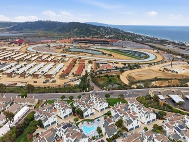 Panoramic Ocean and Del Mar Racetrack views from this recently remodeled beautiful townhome with high ceilings, recessed lighting, neutral decor. Cafe appliances, double sink with Zebra marble counter surfaces, light and airy. Tiled baths, built-in kitchen monitor, baths redone. Elegance in every respect. Pool, Spa and Beach, Bike and Hiking trails in close proximity as well as a number of fabulous restaurants.